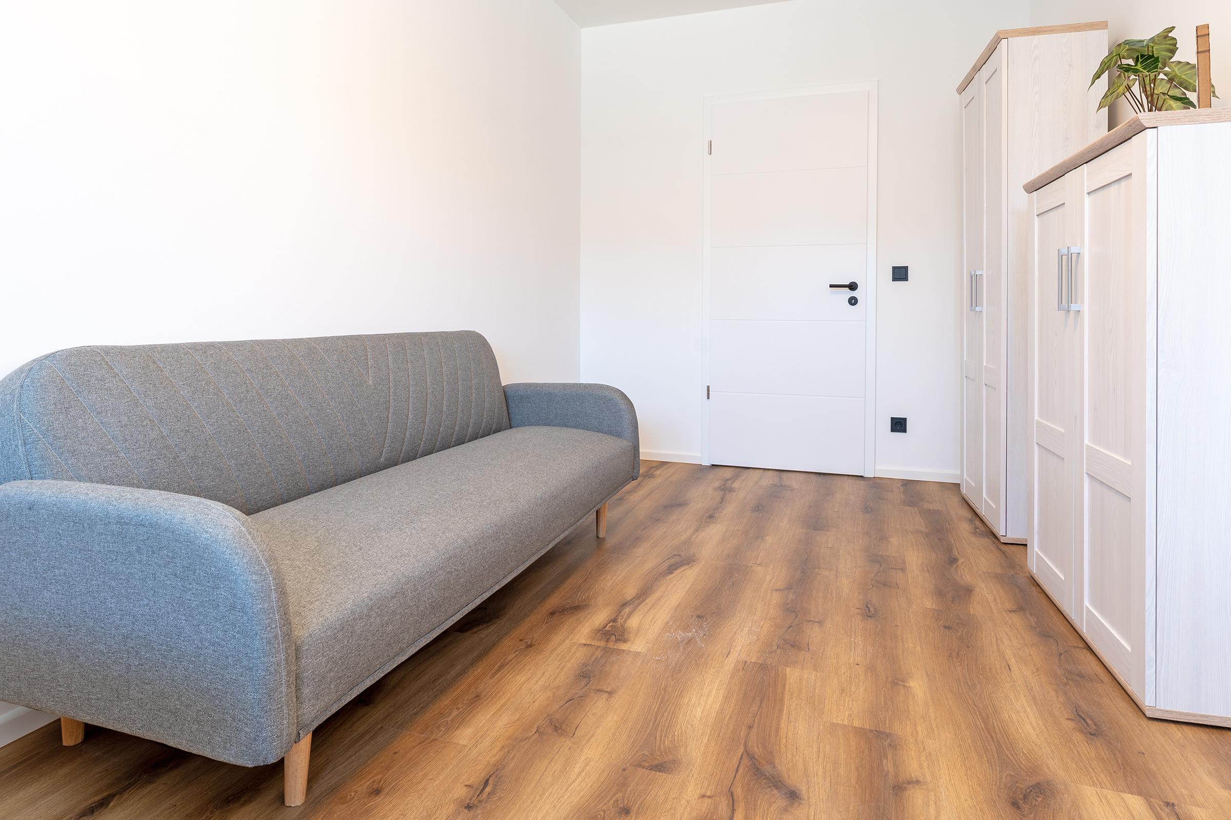 Wohnzimmer: 1 Schlafsofa (100x200 cm), TV, Verdunkelung: Verdunkelungsplissees und -vorhänge, Platz für ein Babybett vorhanden