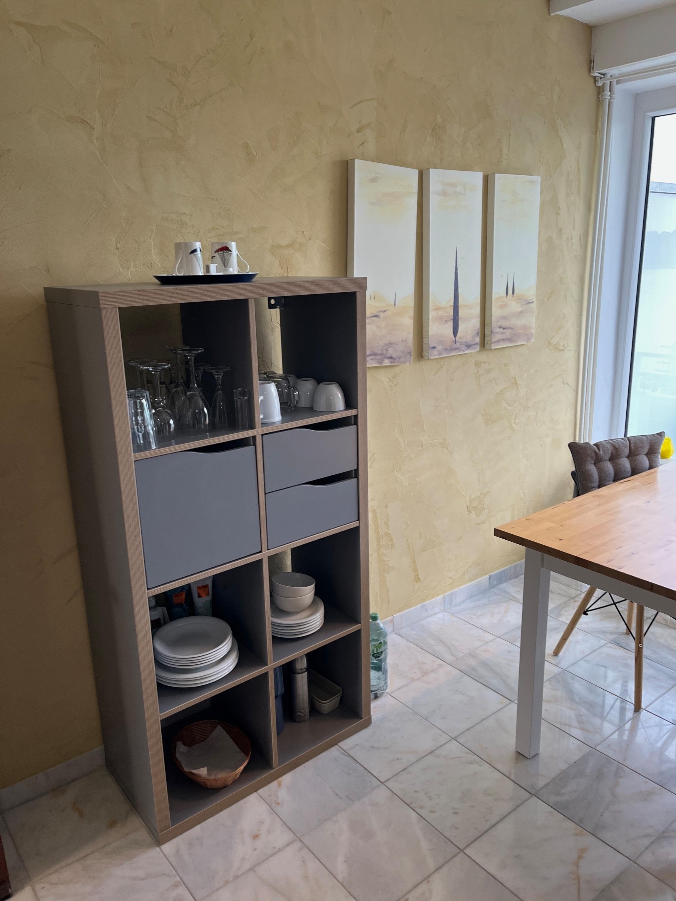 o Spülmaschine, Kühlschrank, Mikrowelle mit Grillfunktion, 2 Kochplatten, Toaster