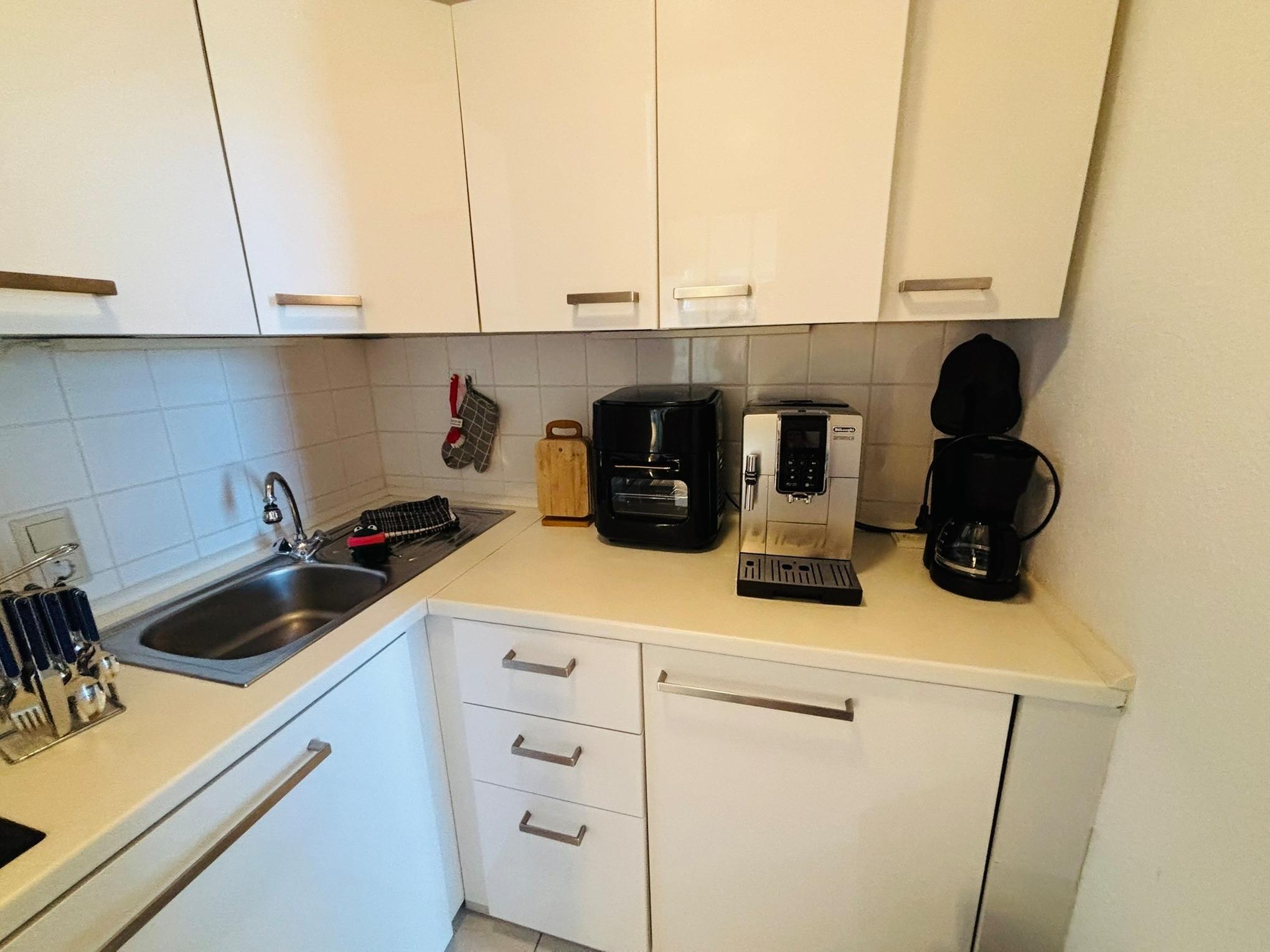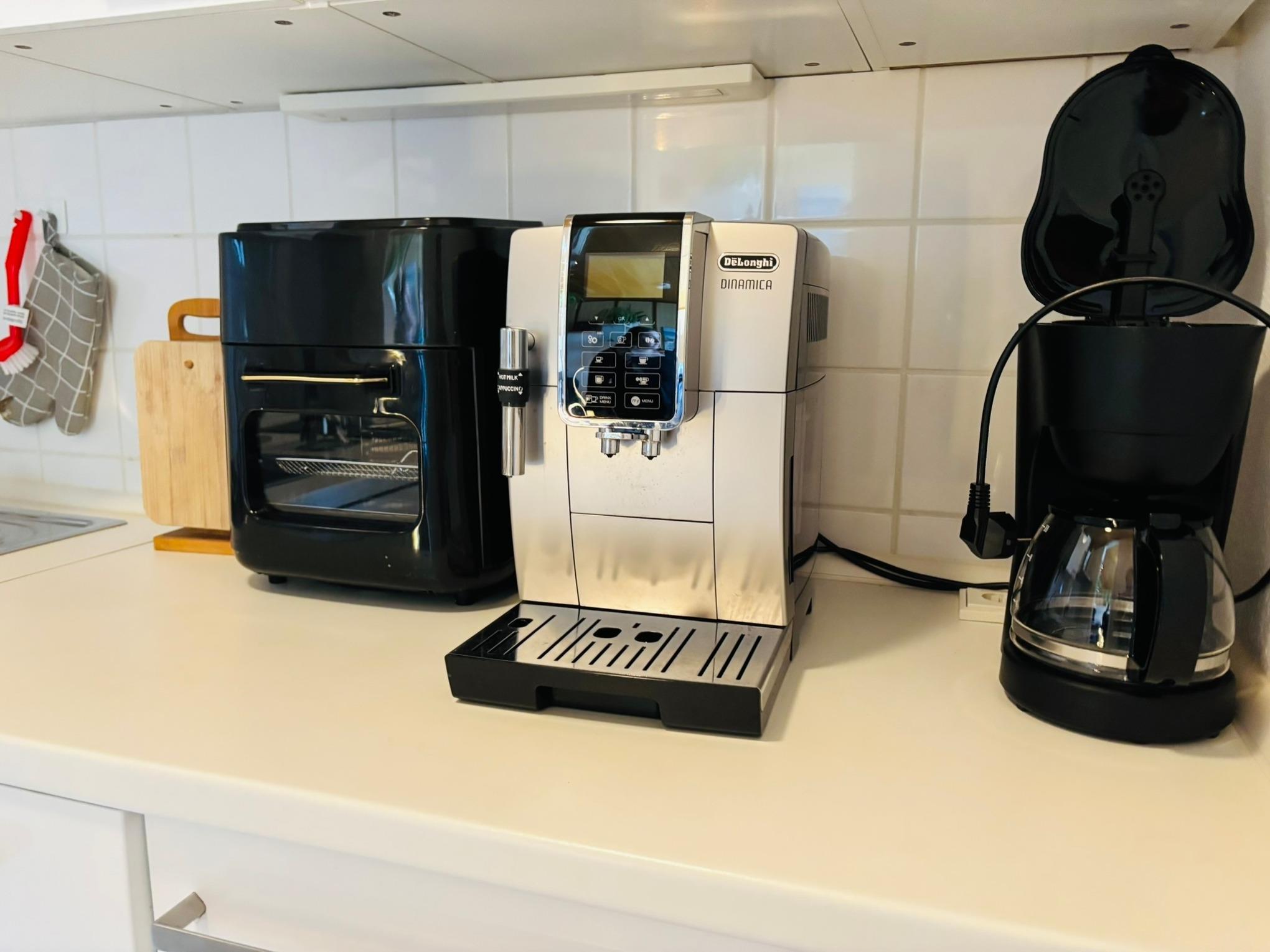Für Kaffeeliebhaber steht eine hochwertige Kaffevollautomat von De Longhi bereit.