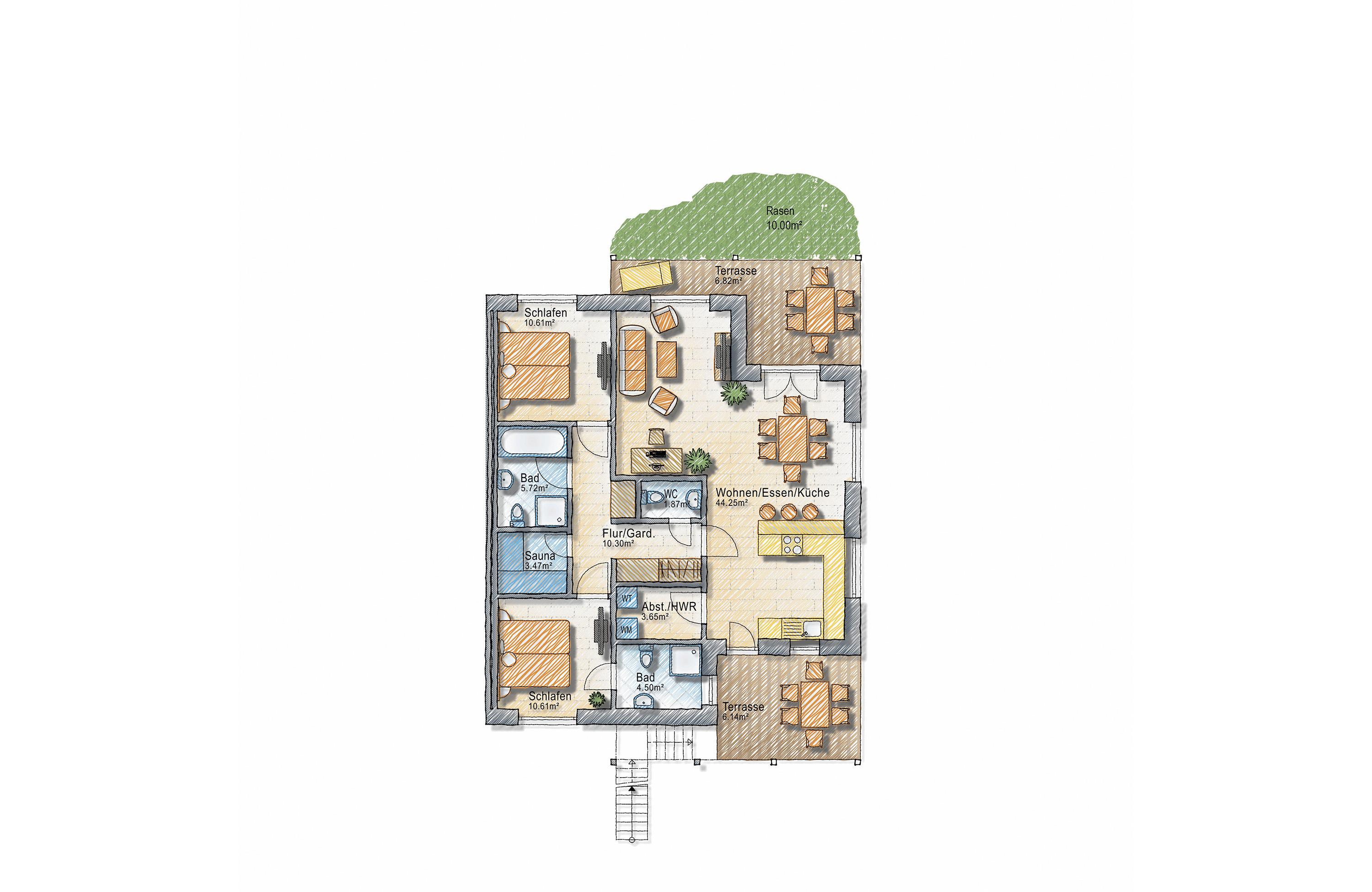Abgerundet wird das Angebot mit zwei separaten Schlafzimmern mit komfortablen Doppelbetten sowie mit der Schlafcouch im Wohnbereich, welche sich bei Bedarf entsprechend aufbetten lässt. Das Ocean Two Bedroom mit Sauna bietet Platz für bis zu 6 Personen.
