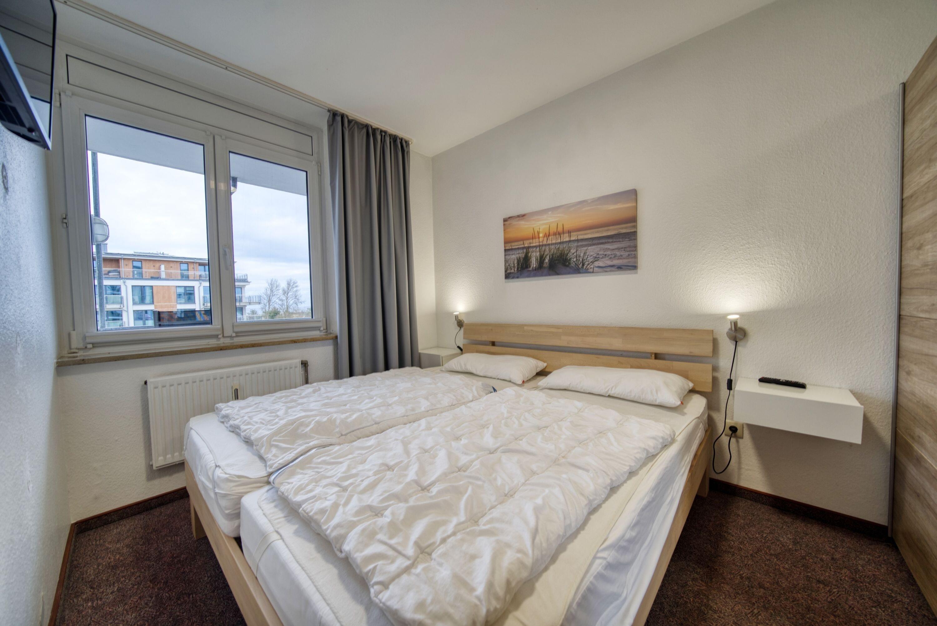 Separates Schlafzimmer mit gemütlichem Doppelbett und eigenem TV