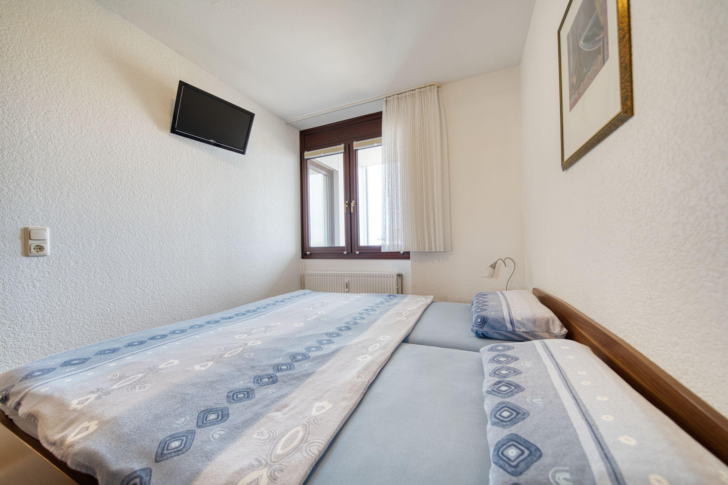 Schlafzimmer: Doppelbett und ein eigener TV für entspannte Stunden.