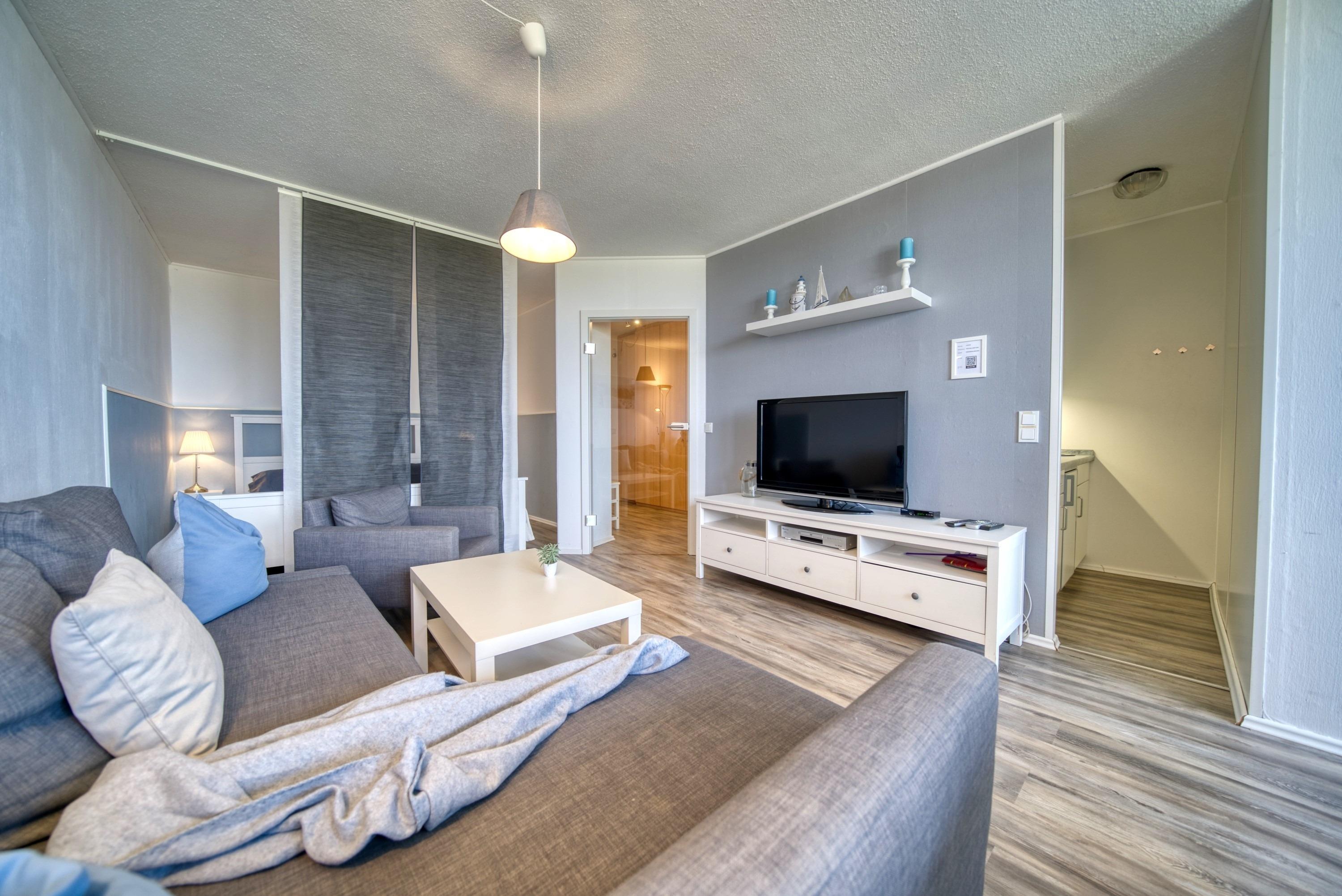 Verbringen Sie unvergessliche Tage in dieser gemütlichen Ferienwohnung im Haus A, die Ihnen auf 45 m² alles bietet, was Sie für einen entspannten Urlaub brauchen. Die 2. Etage sorgt für ruhige Nächte und der Balkon mit Blick in Richtung Norden und Ostsee lädt zum Verweilen ein. Ideal für bis zu 5 Personen!