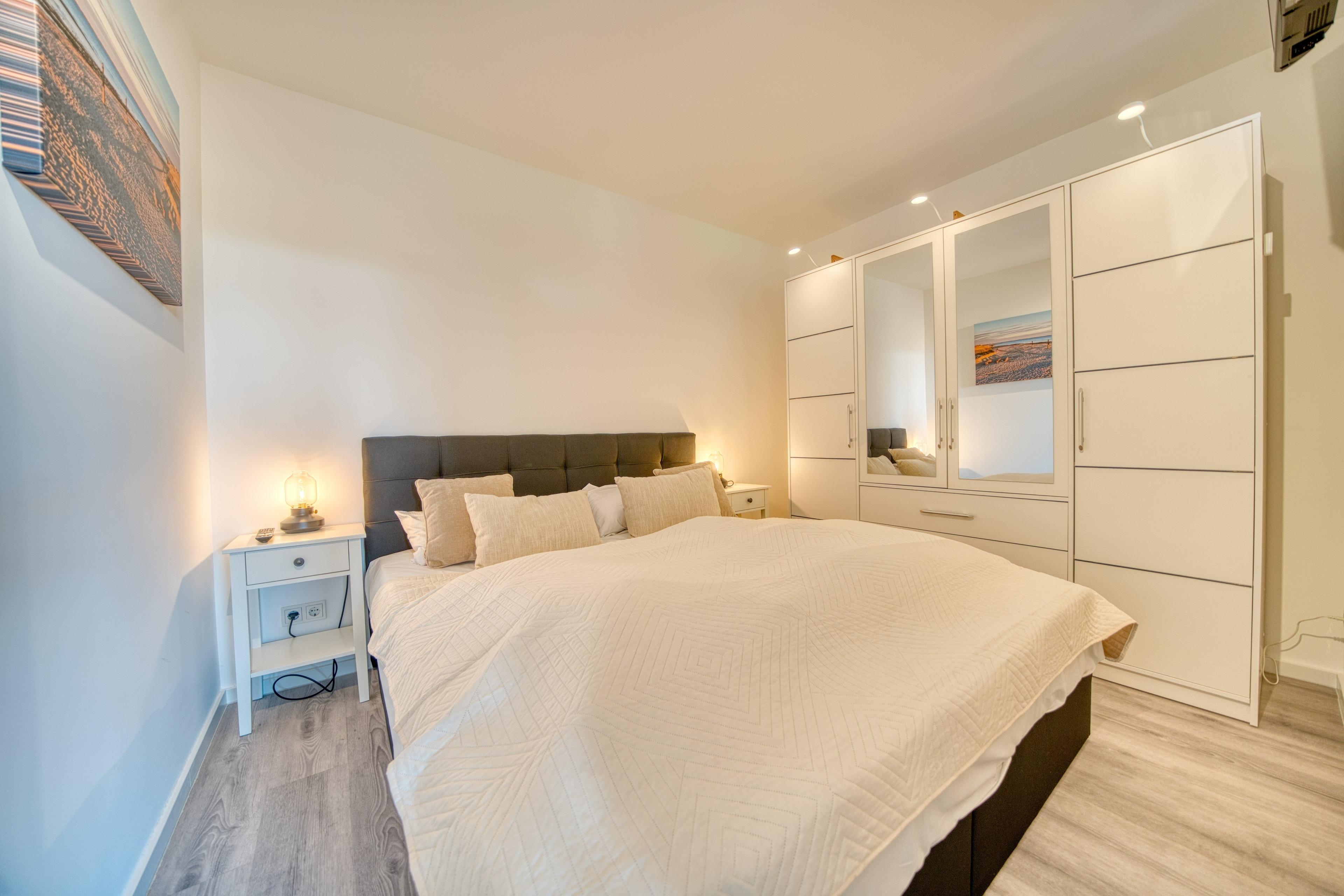 Der separate Elternschlafbereich bietet ein gemütliches Doppelbett und einen eigenen Fernseher für entspannte Abende.
