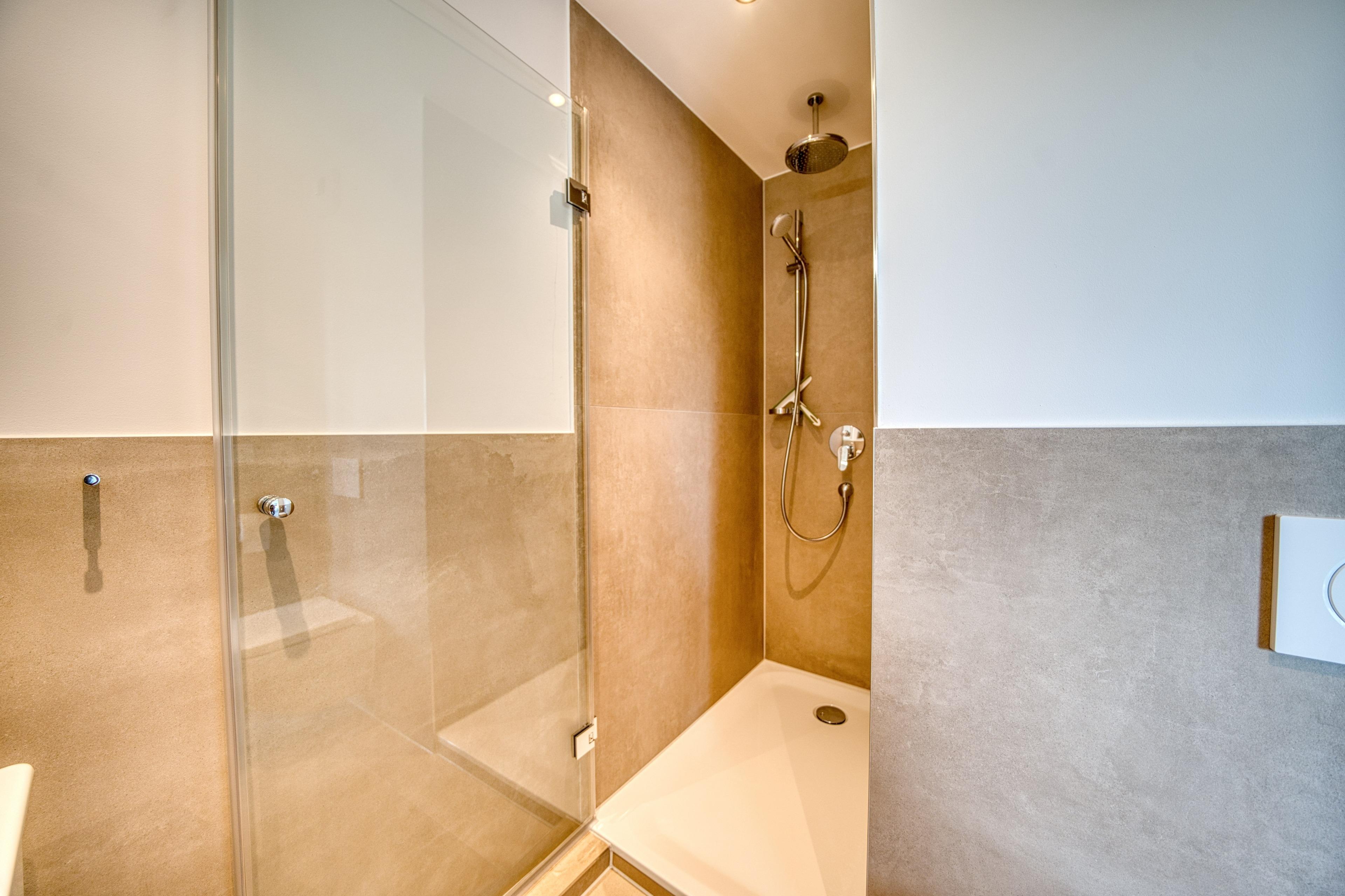 Frisch, modern, komfortabel:Das Badezimmer punktet mit einer großzügigen Dusche, moderner Ausstattung und viel Helligkeit – hier startet der Tag mit einem Lächeln.