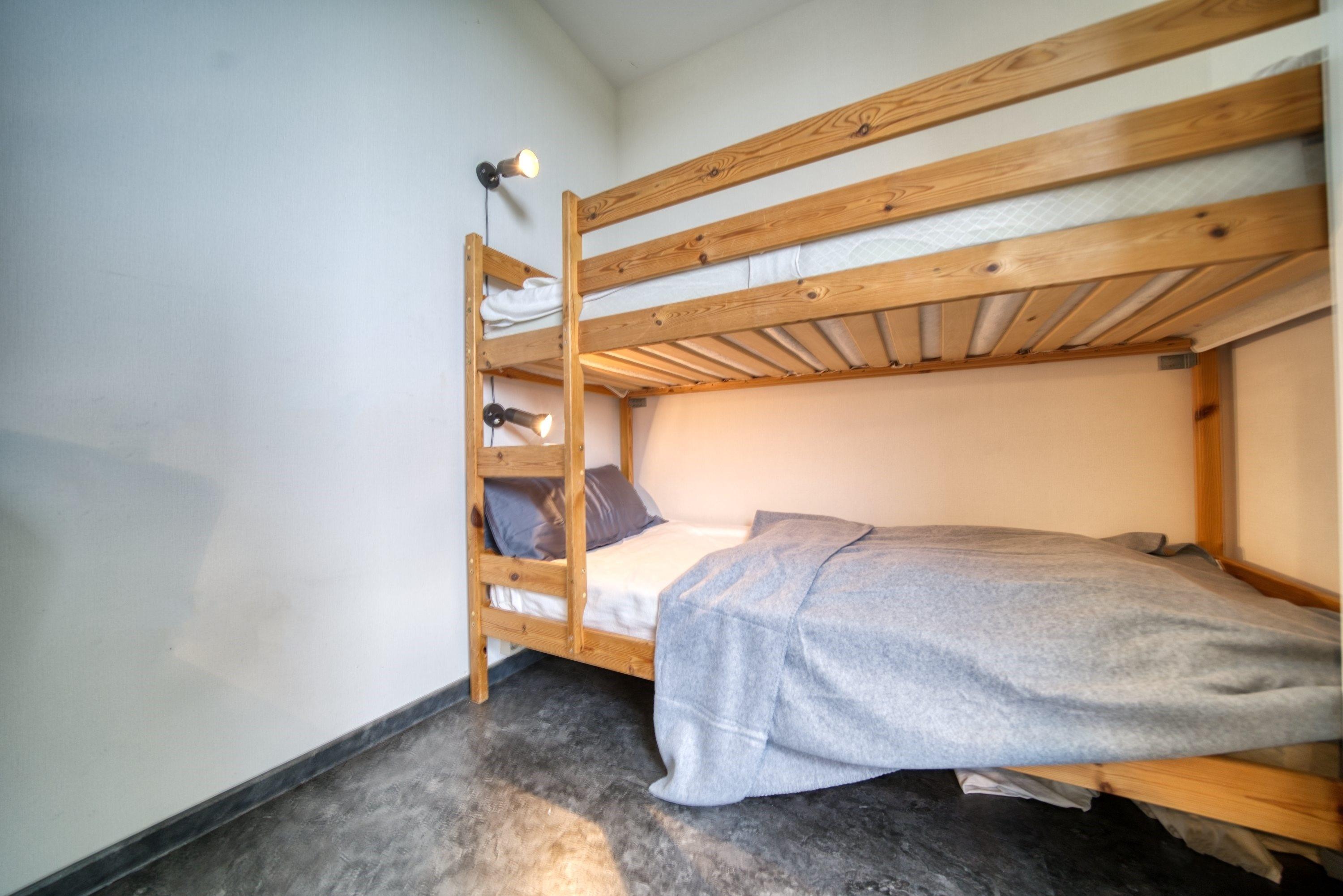 Elternschlafbereich mit großem Doppelbett (2*90x200200 cm), durch Vorhang abtrennbar
