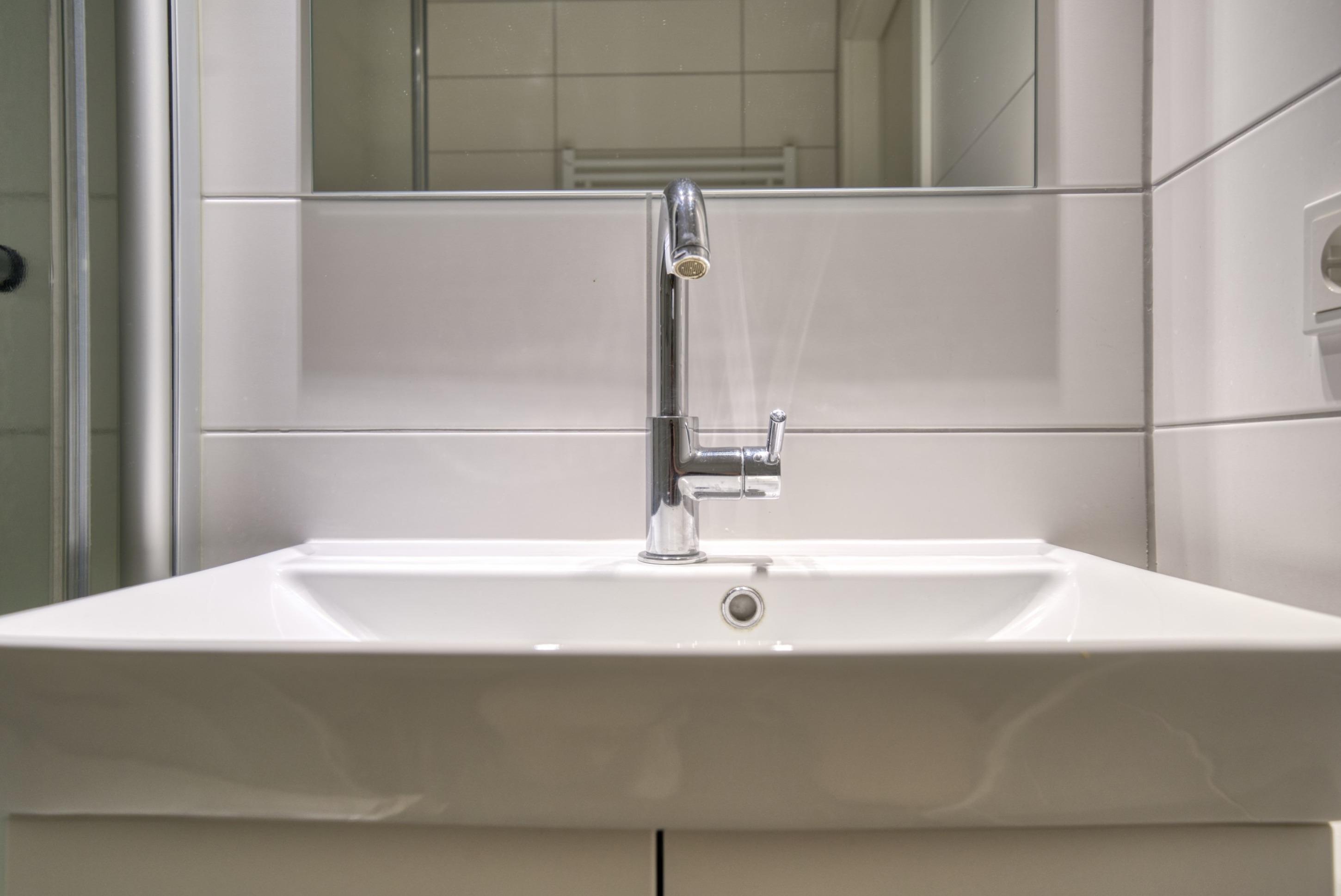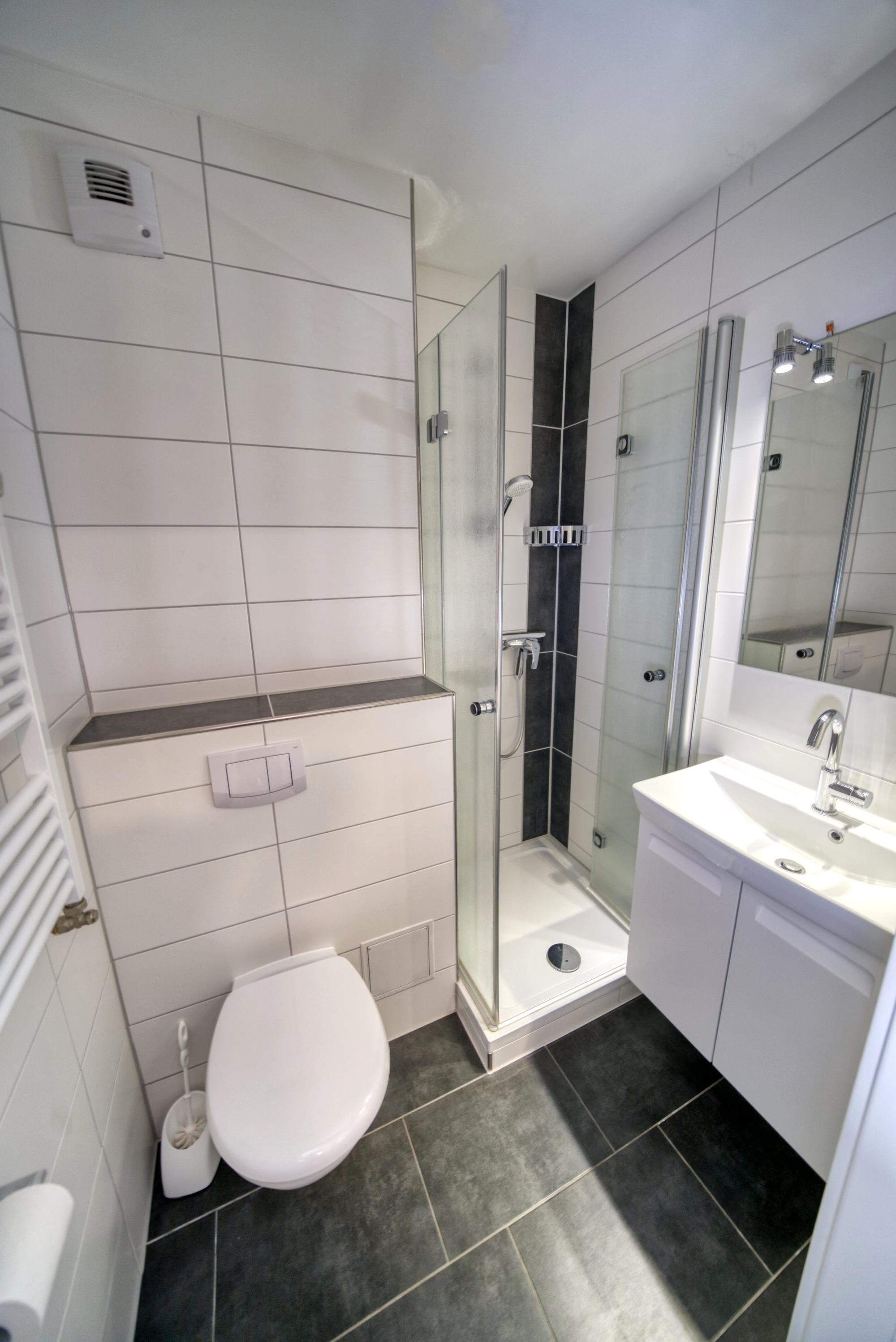modernes Bad mit Dusche, WC [&] neuen Sanitäreinrichtungen