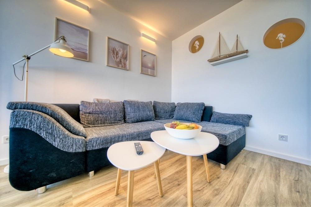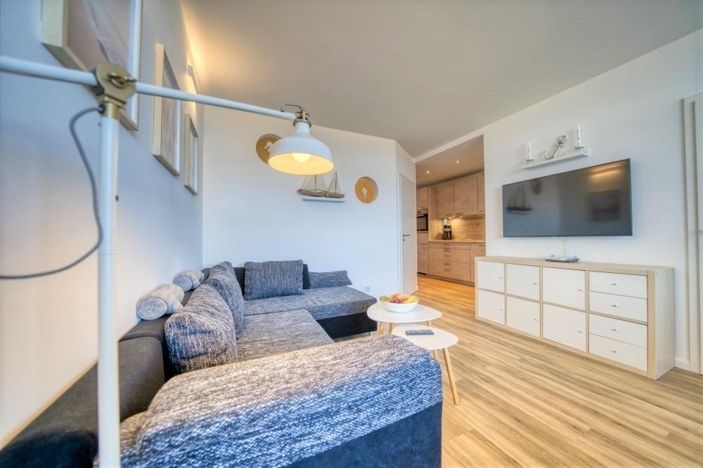 Verbringen Sie erholsame Tage an der Ostsee in der Ferienwohnung B-6-2 im beliebten Ferienpark Heiligenhafen. Die Wohnung liegt in unmittelbarer Nähe zum Strand und begeistert mit einem traumhaften Meerblick, den Sie sowohl aus dem Wohnzimmer als auch vom Balkon genießen können.