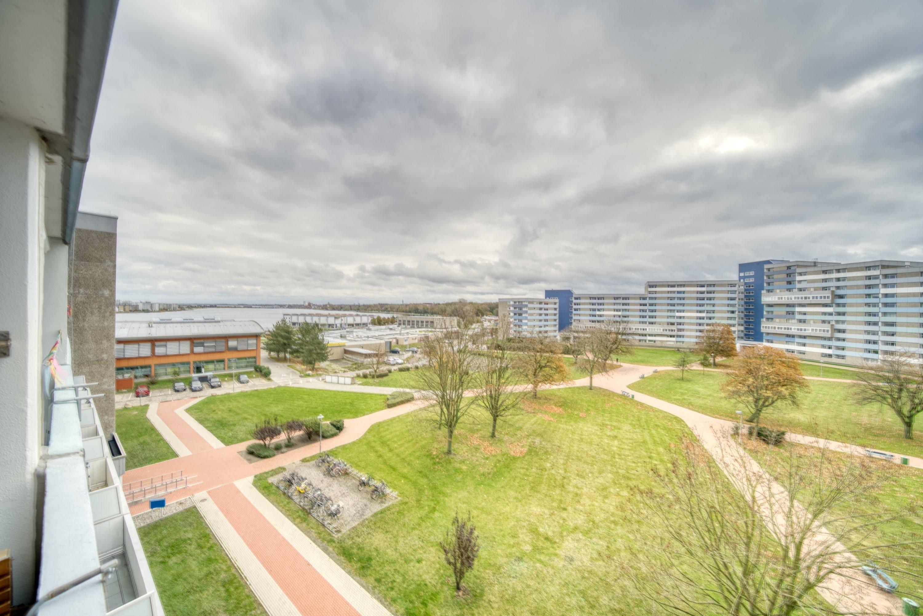 Haus C 5. Etage – mit Fahrstuhl erreichbar45 qm Wohnfläche – für bis zu 4 PersonenBalkon mit Blick auf den Innenhof und Binnensee
