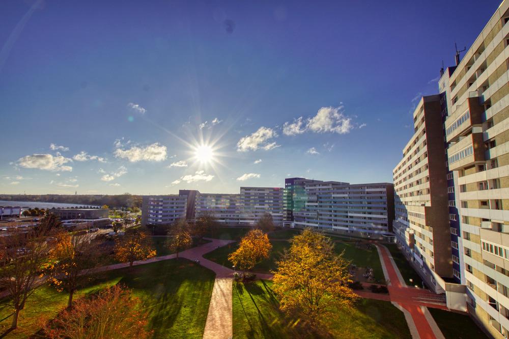 Nur ca. 30 m bis zum Aktiv-Hus und zur Ladenzeile mit Einkaufsmöglichkeiten, Bäckern und Restaurants