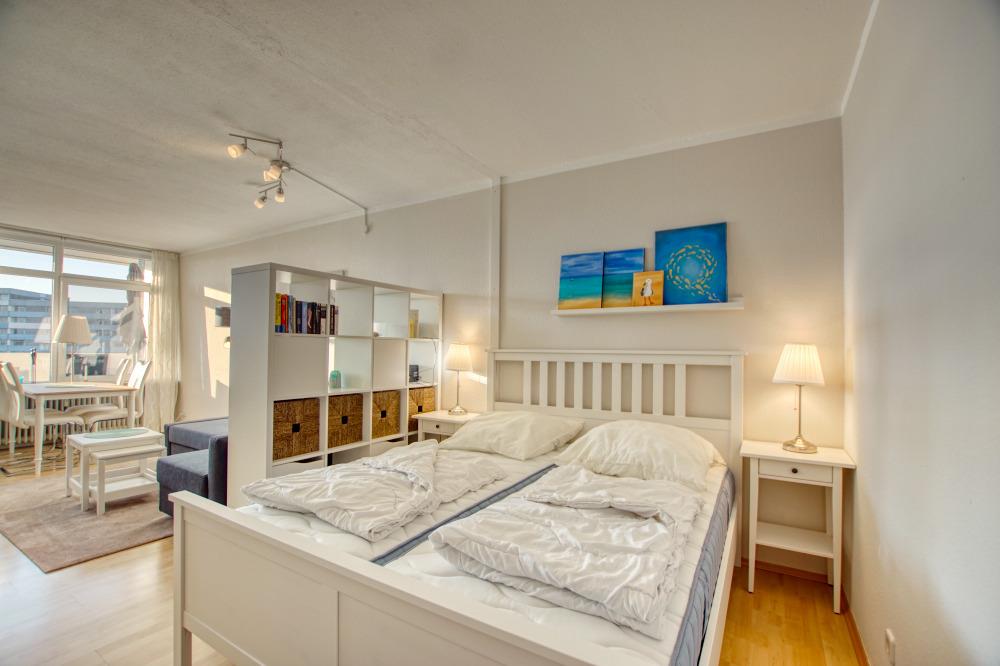 Wohn-/Schlafbereich mit Doppelbett