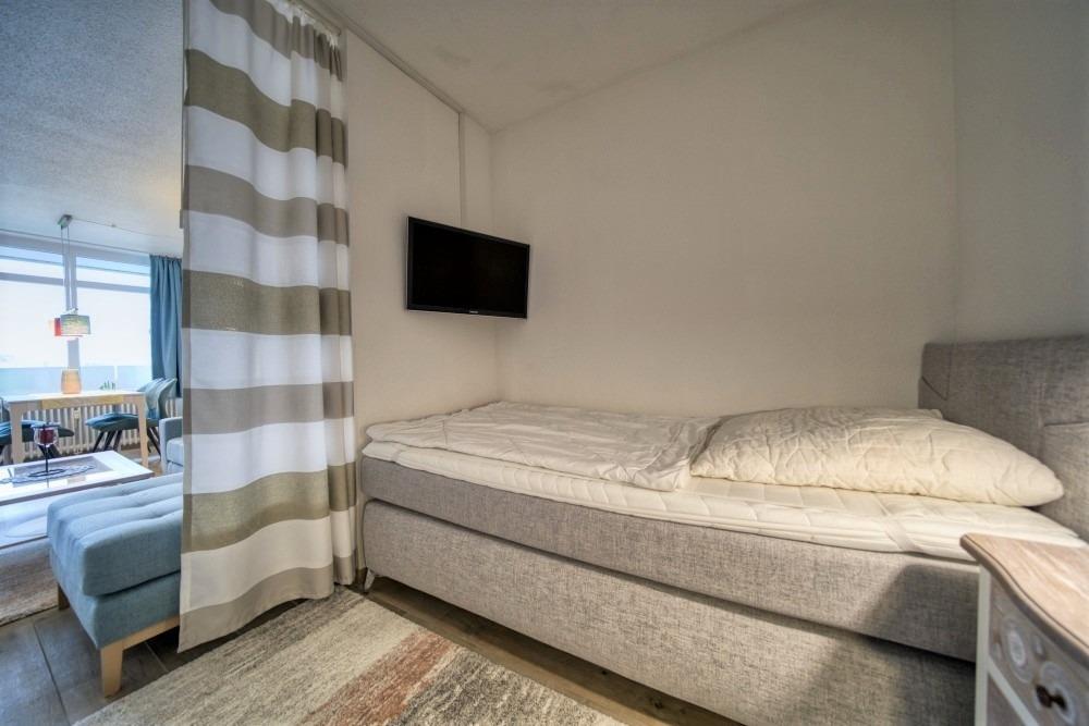Wohn-Schlafbereich mit zwei Einzelbetten und TV