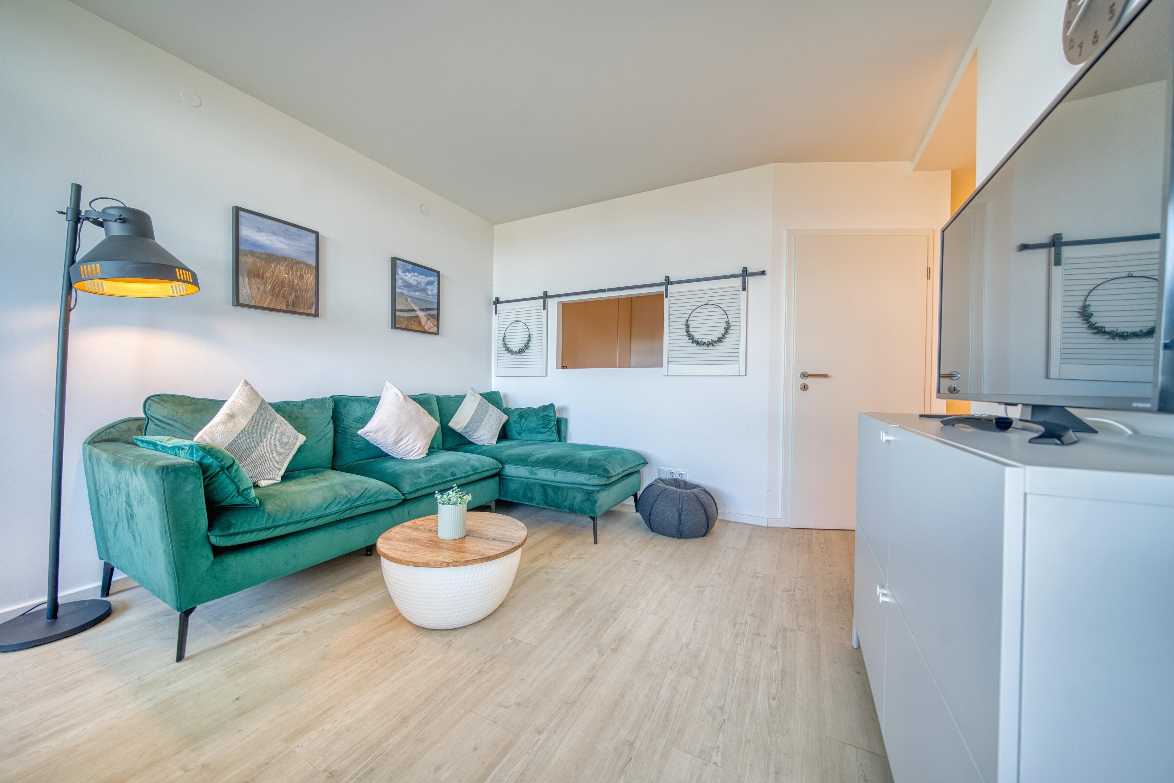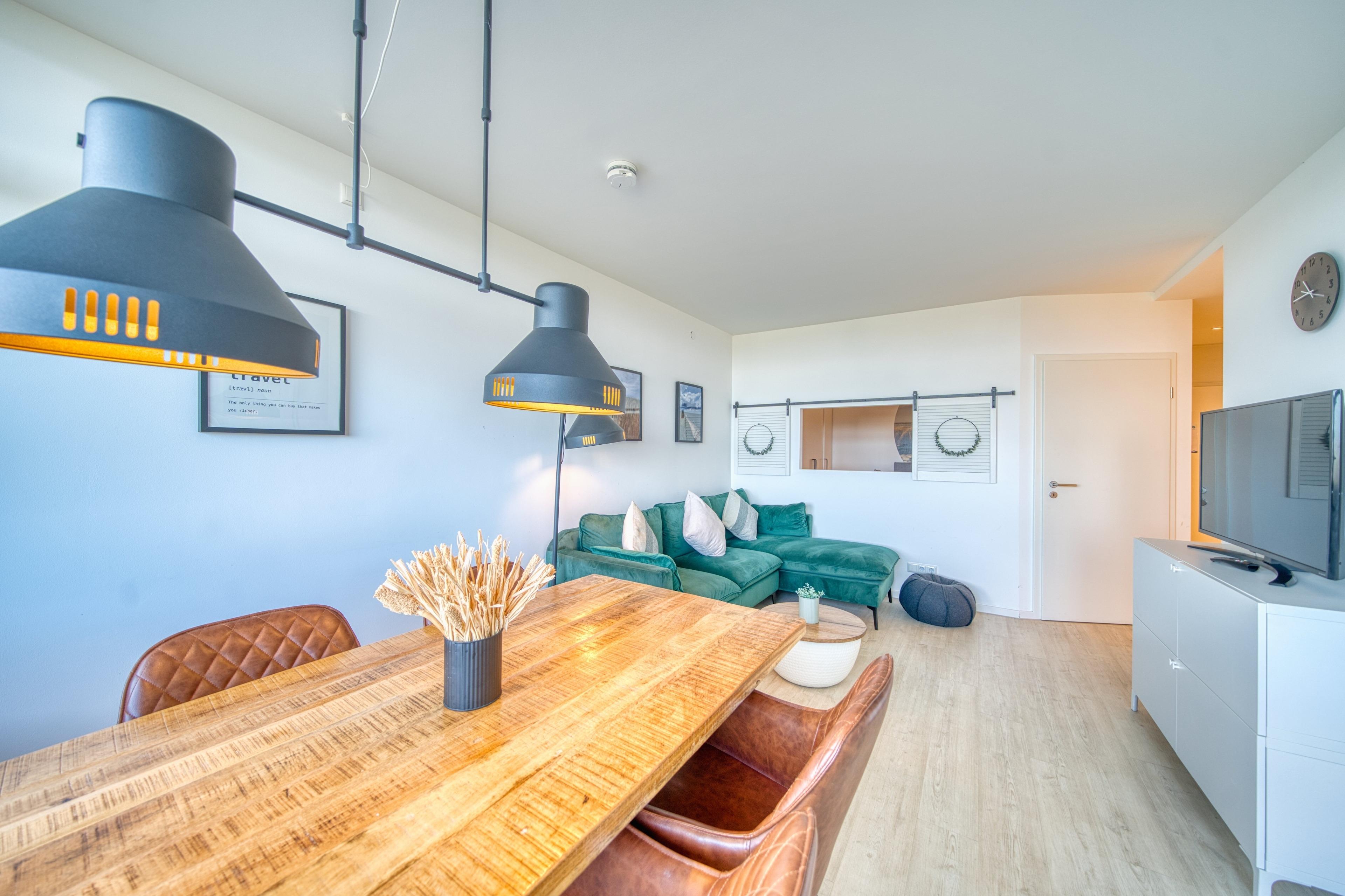 Wohnbereich mit Sofa und Essbereich (4 Sitzplätze)