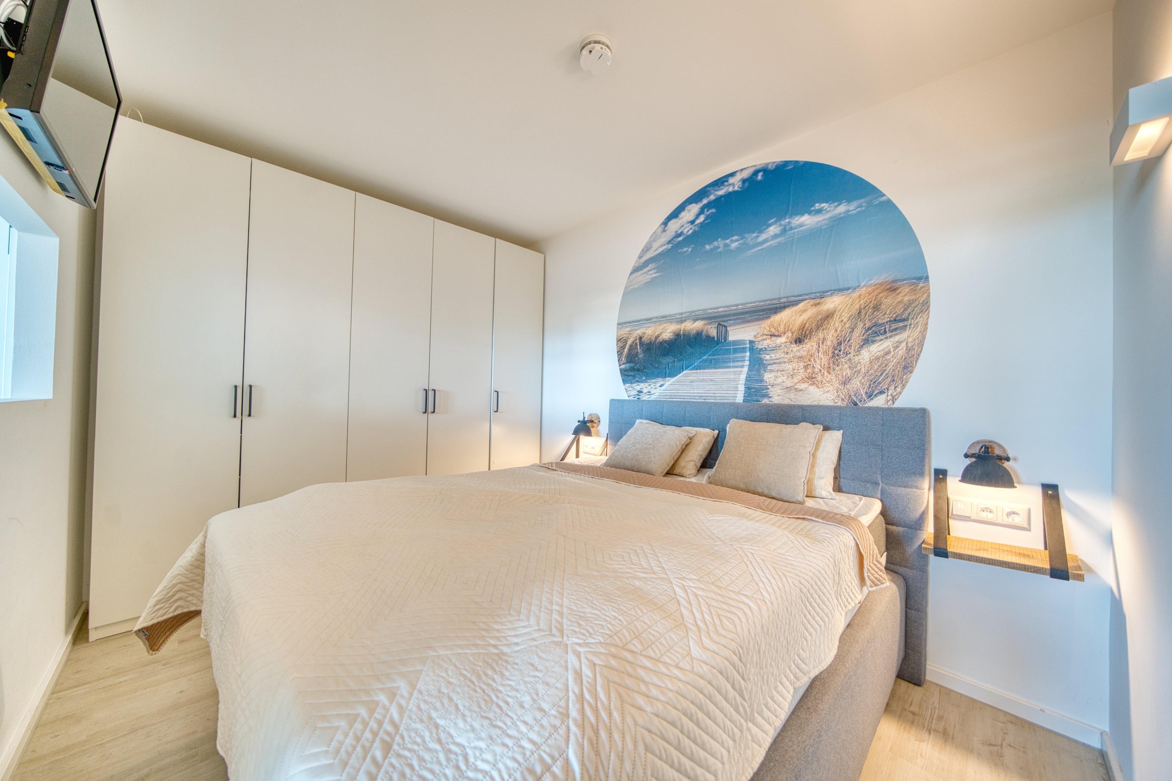 Elternschlafzimmer mit Doppelbett und TV