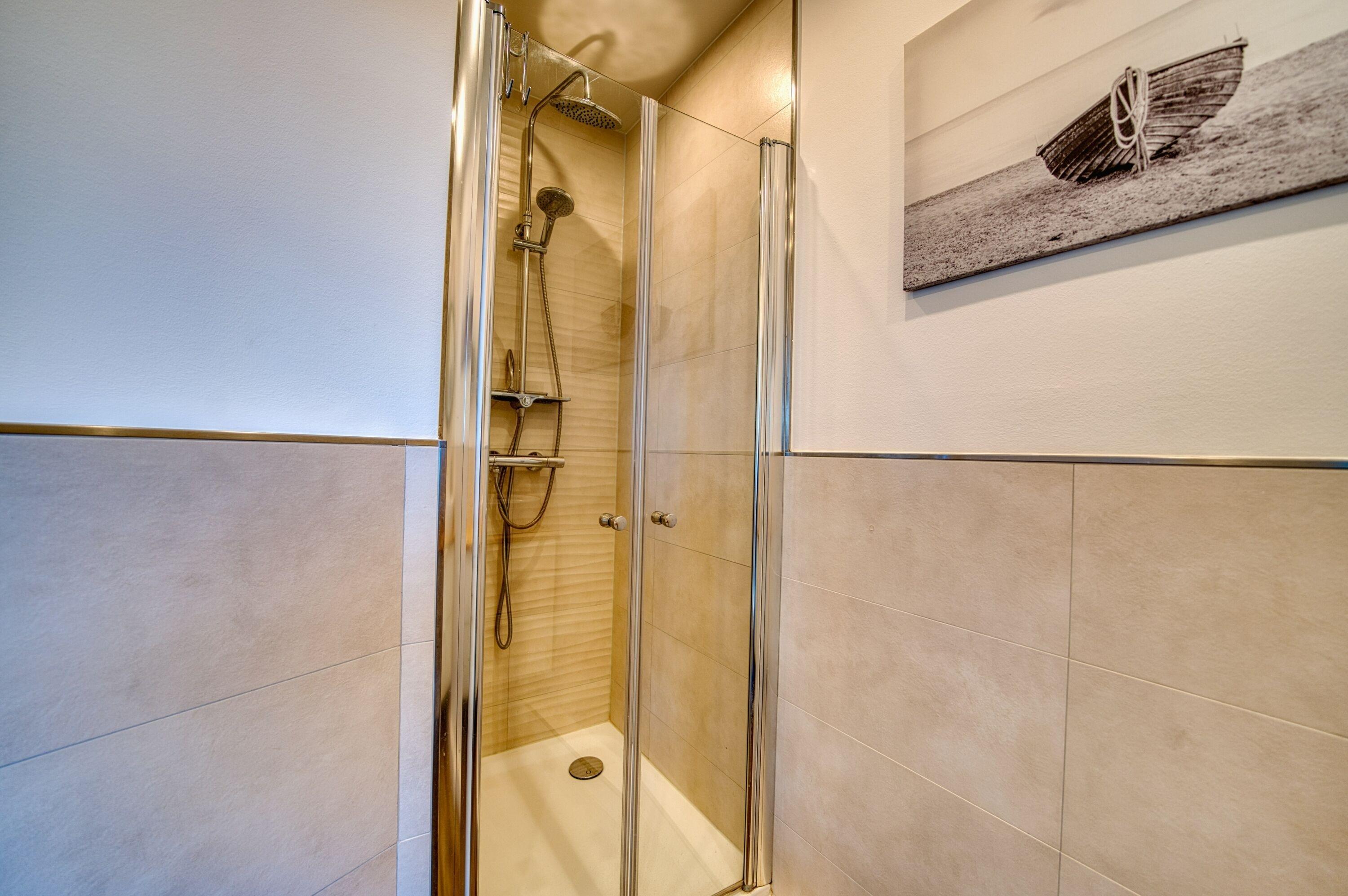 Vergrößertes Bad mit moderner Duschkabine und neuwertiger Ausstattung