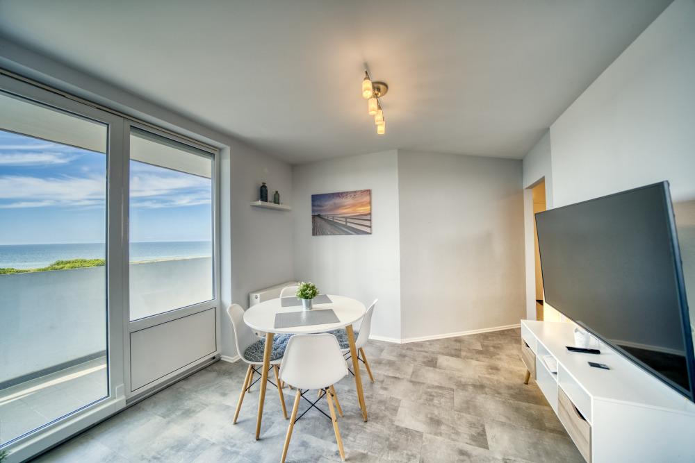 Genießen Sie den einmaligen Blick auf die Ostsee und die Ruhe, die Ihnen diese 4-Personen-Ferienwohnung bietet. Jetzt buchen und entspannte Stunden in Heiligenhafen genießen!