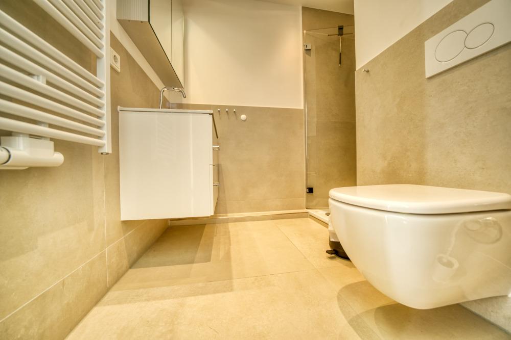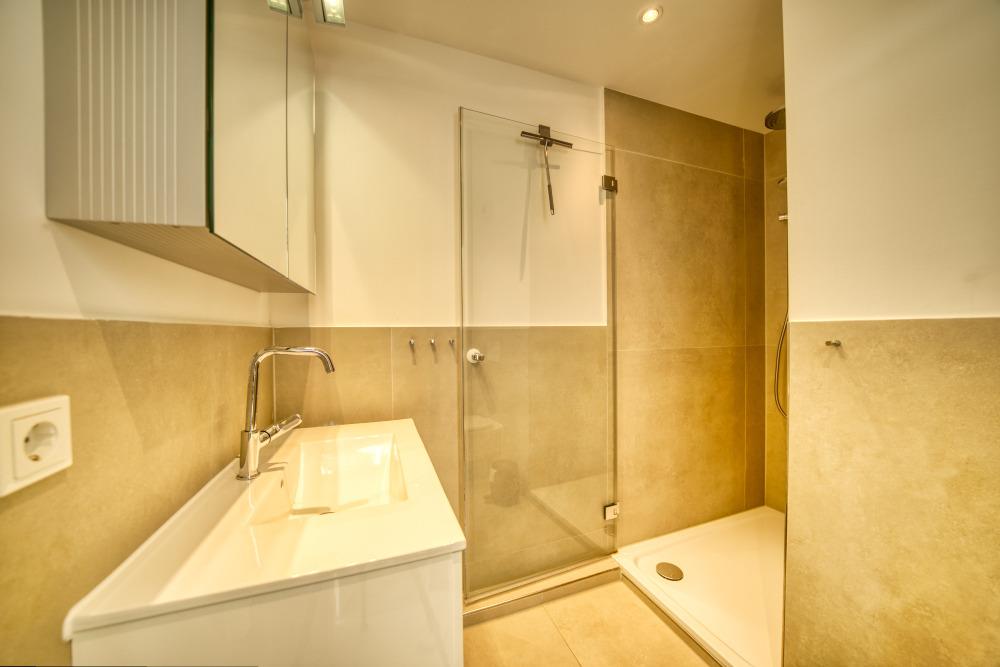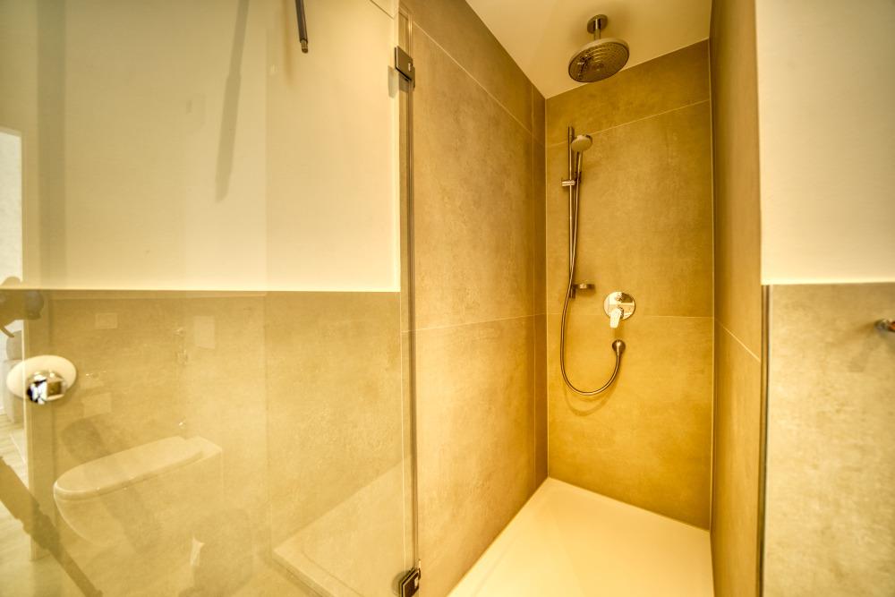 Bad mit großzügiger Dusche, moderner Ausstattung und vergrößertem Grundriss