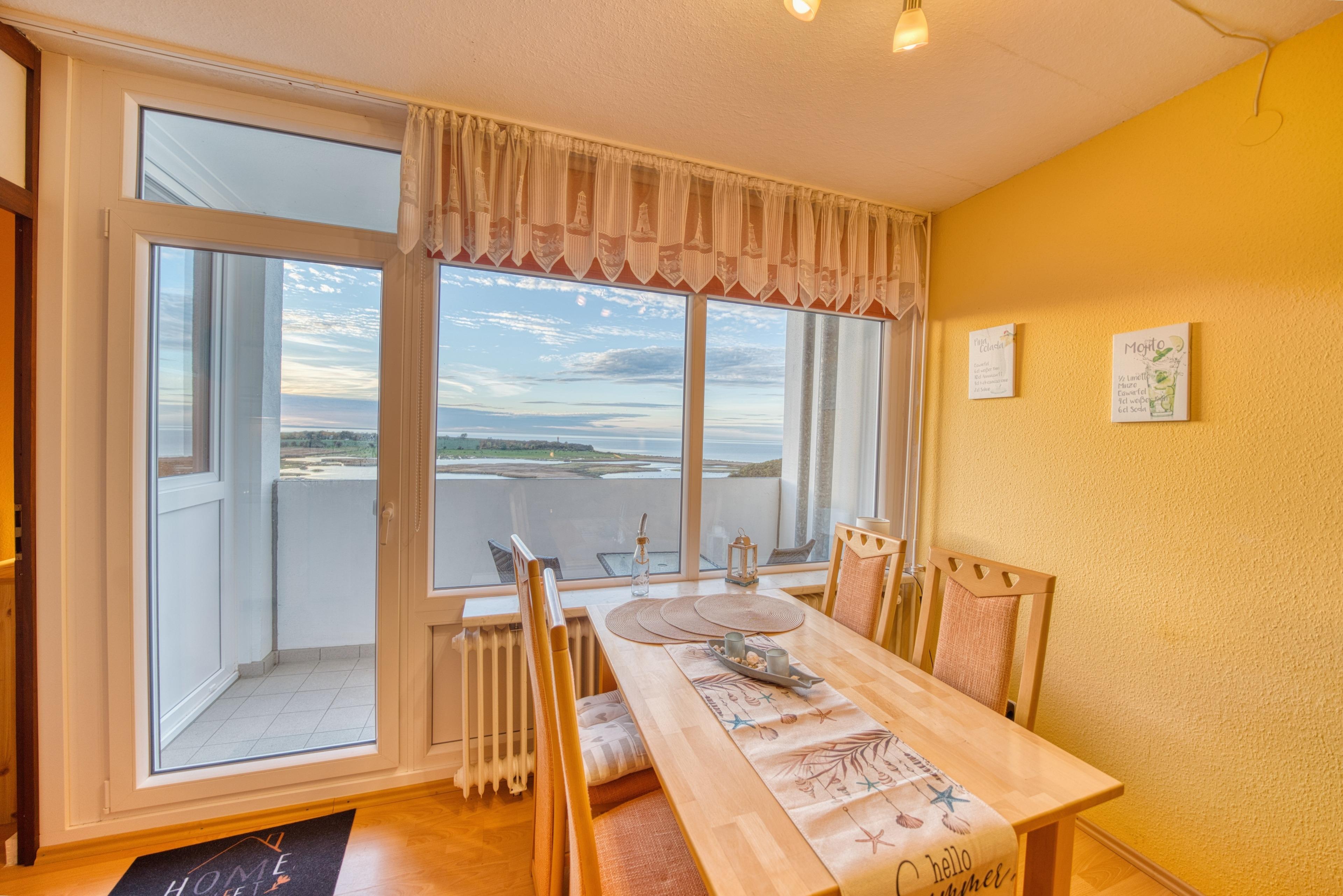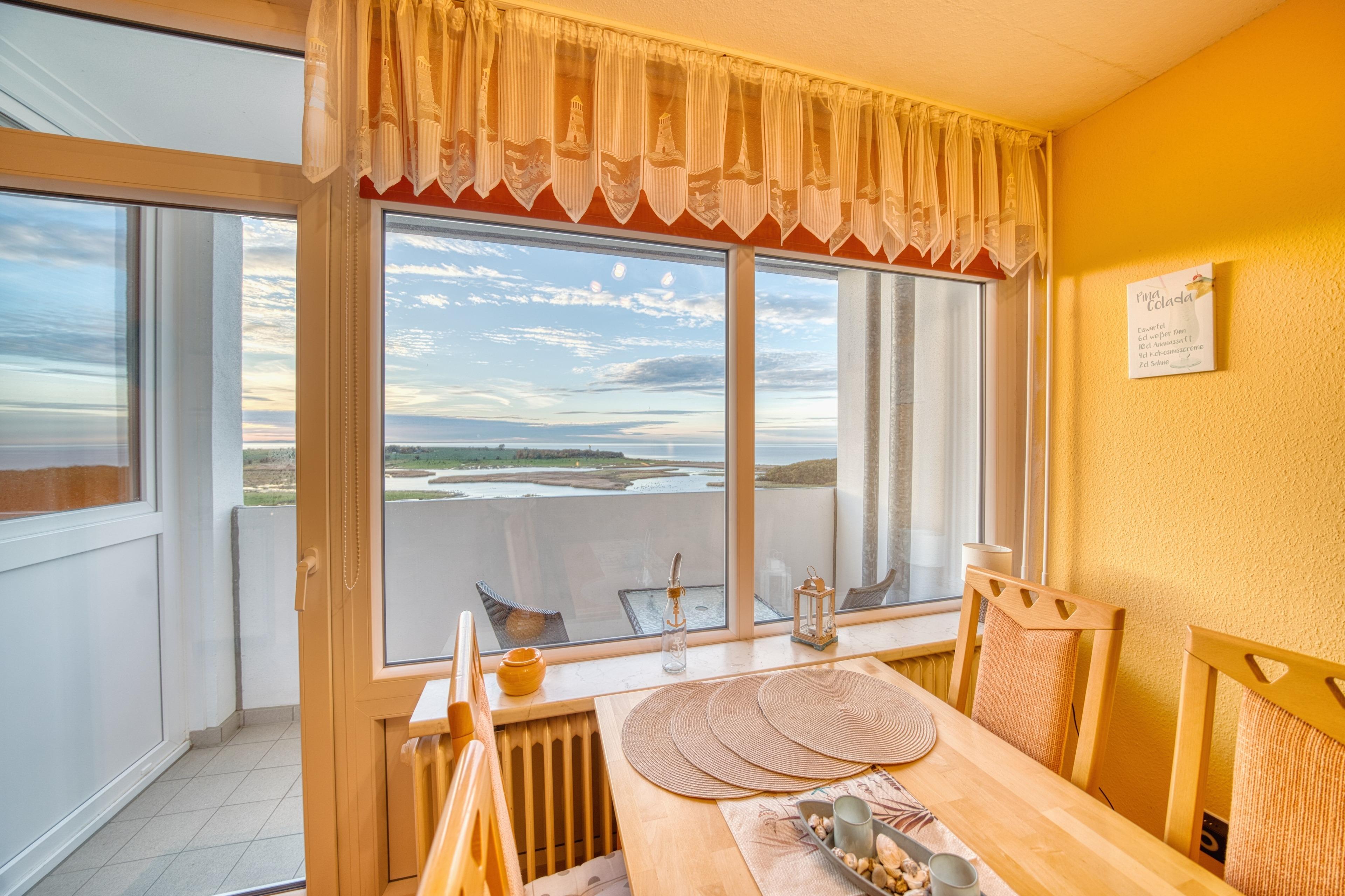 Esstisch direkt am Fenster mit Panoramablick auf die Ostsee