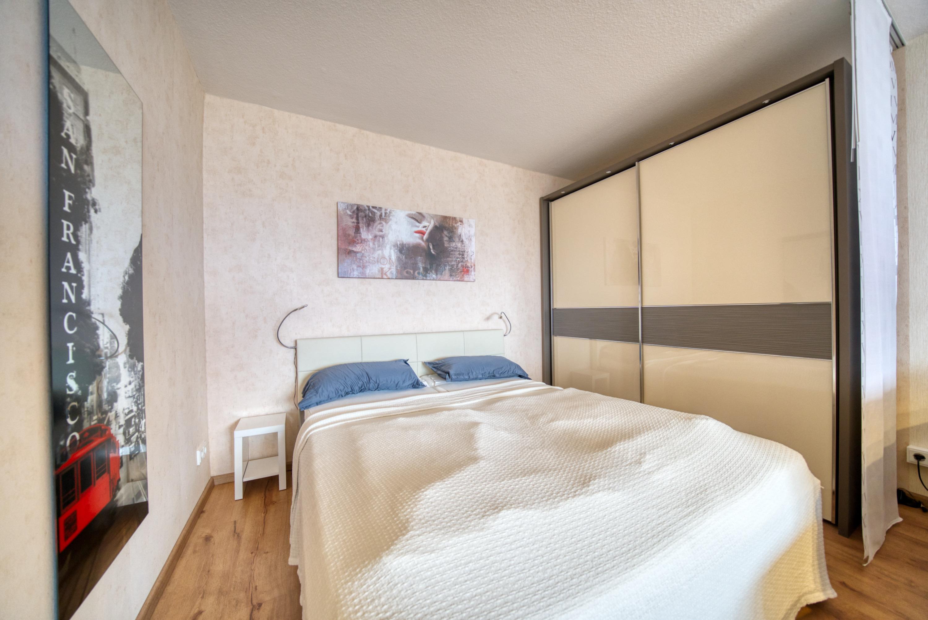 Die Ferienwohnung im Haus E, 11. Etage, mit Balkon zur Westseite, bietet einen herrlichen Ostseeblick und Sonne vom Nachmittag bis in die Abendstunden. Genießen Sie das farbenfrohe Lichterspiel des Sonnenuntergangs an der Ostsee.