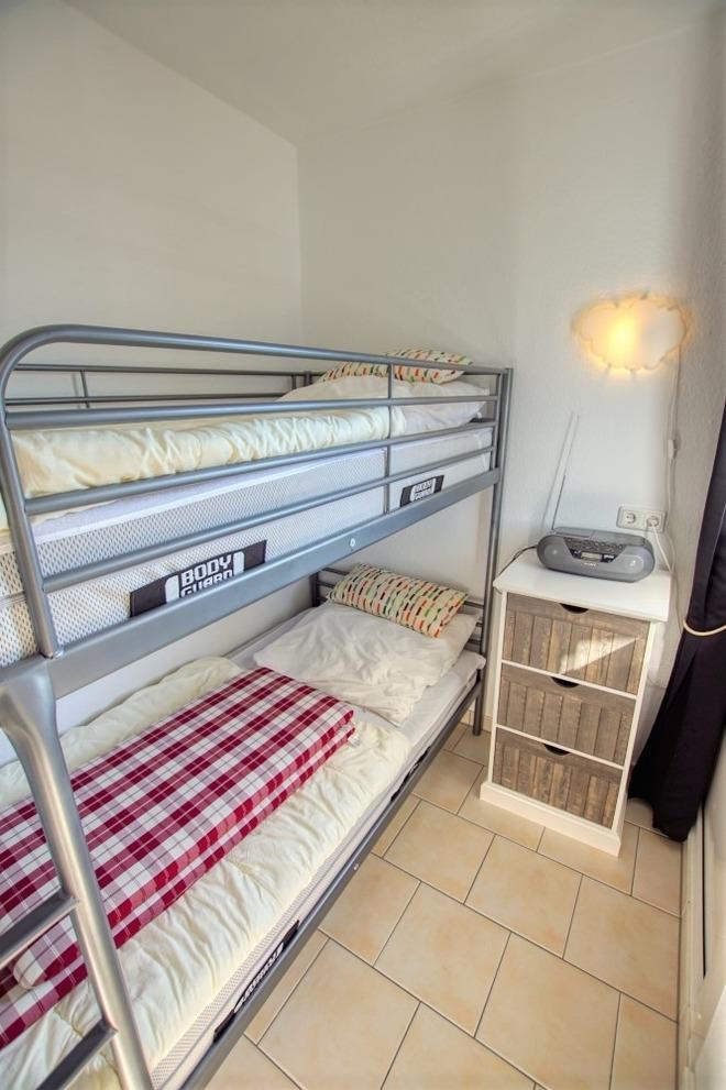 Separates Kinderzimmer mit Etagenbett, eigenem TV und Verdunklungsmöglichkeit