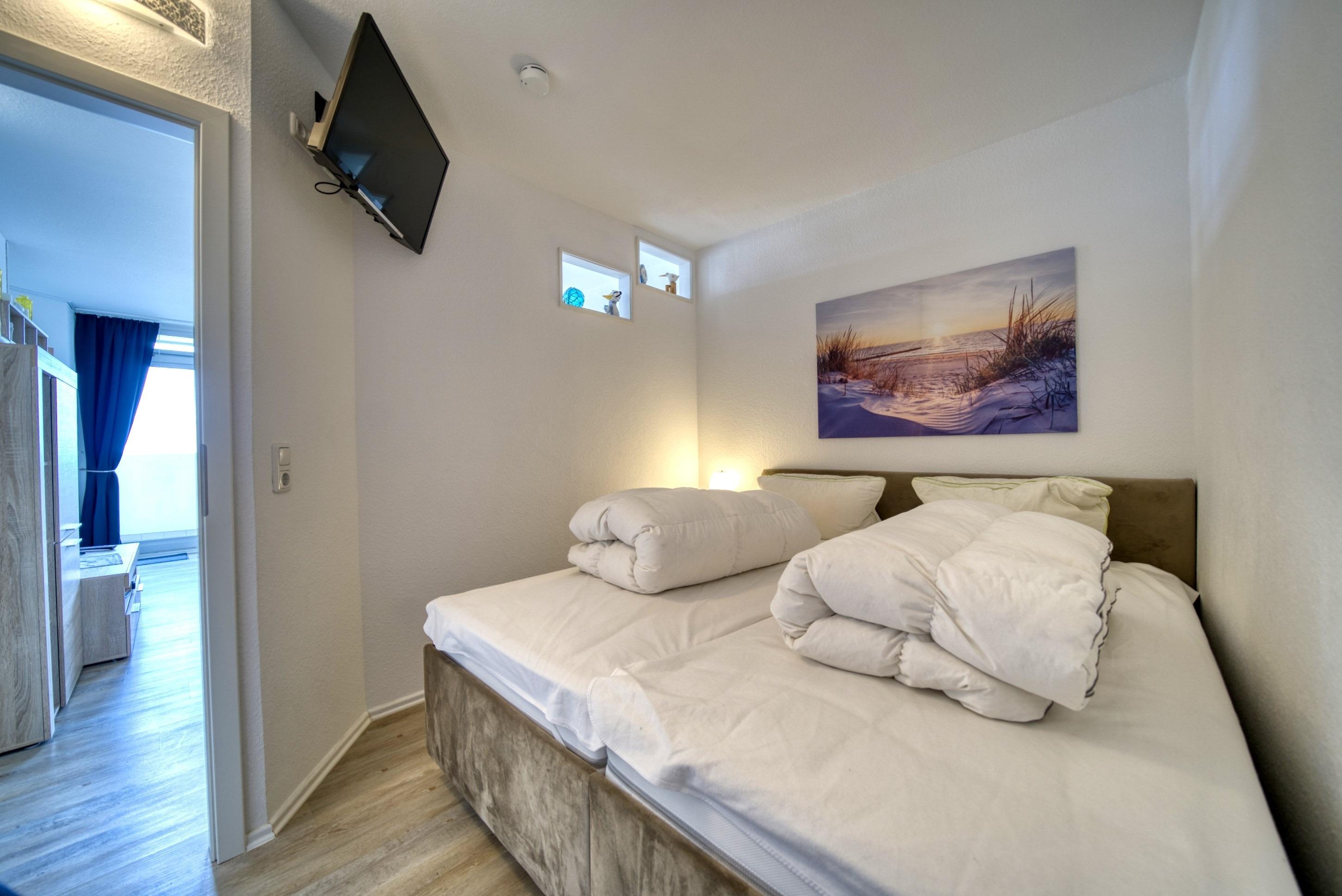 Separates Elternschlafzimmer mit Doppelbett und TV