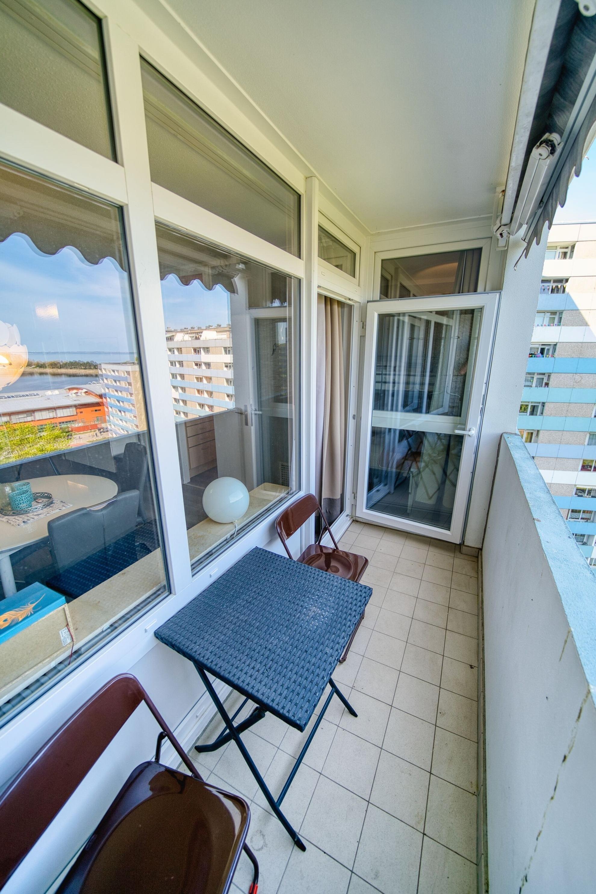 Balkon mit Aussicht auf Ostsee und Fehmarnsundbrücke