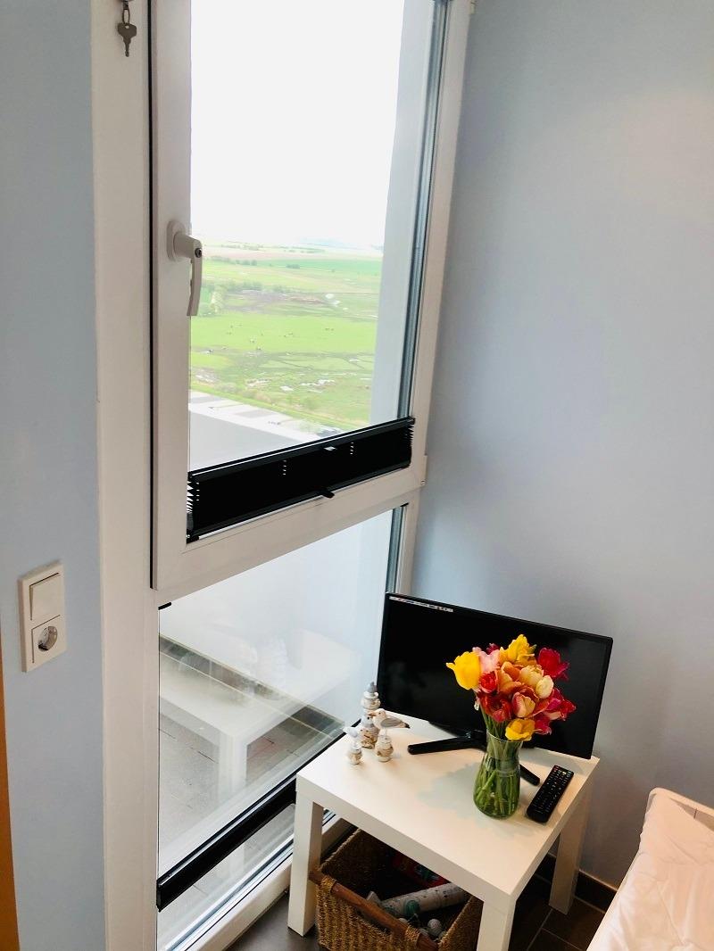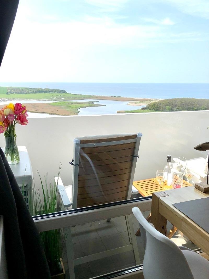 Der Balkon ist zur Westseite und bietet einen herrlichen Blick auf die Ostsee und die Eichholzniederung, dem Landschaftsschutzgebiet vor der Haustür.
