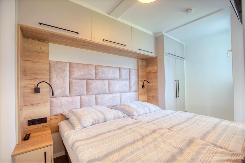 Separates Schlafzimmer mit Doppelbett, TV [&] Außenfenster