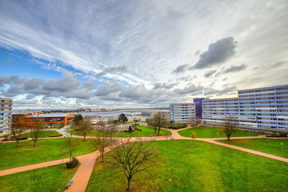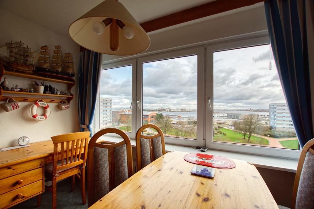 Die Wohnung liegt im Haus G Ferienpark, in der 5. Etage und bietet einen herrlichen Ausblick auf den Binnensee sowie die Ostsee in Richtung Hafen und Fehmarnsundbrücke.
