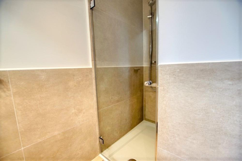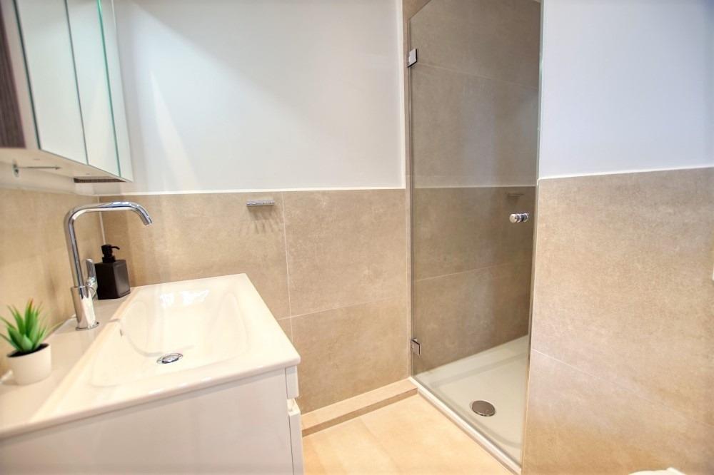 Das geschmackvoll gestaltete Badezimmer überzeugt durch: