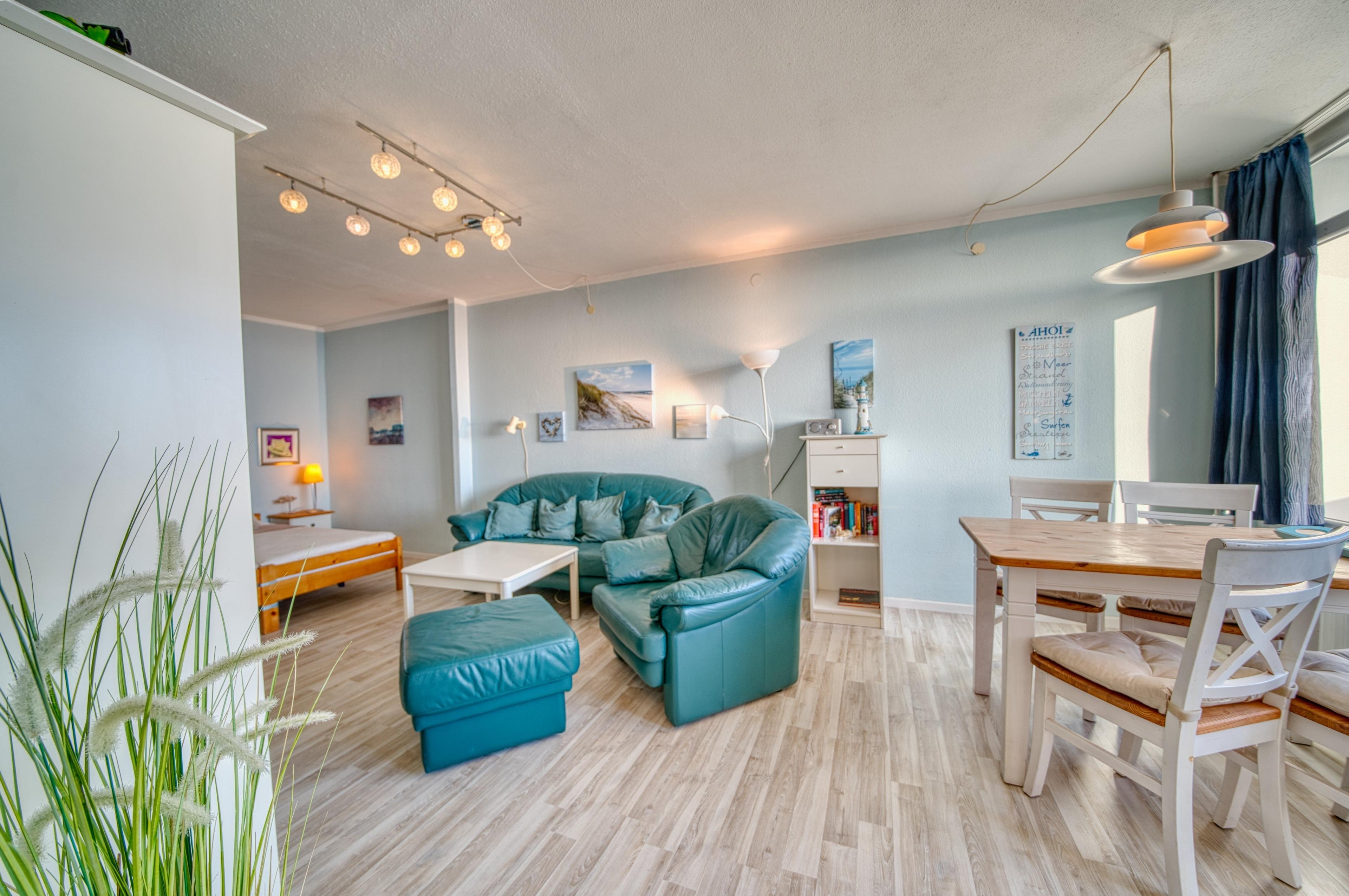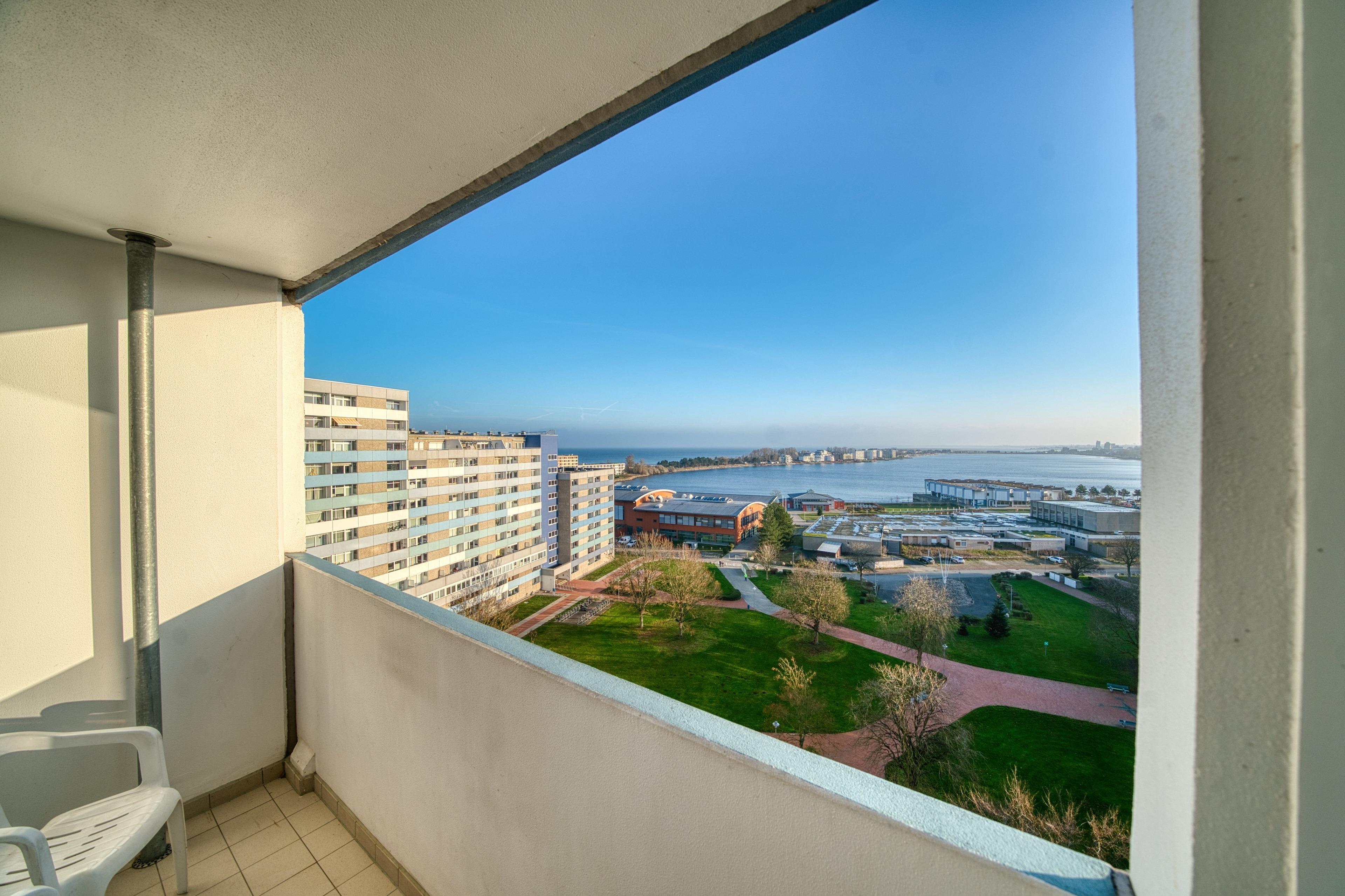 Genießen Sie Ihren Urlaub in dieser charmanten Ferienwohnung in der 10. Etage im Haus G des beliebten Ferienparks Heiligenhafen. Mit 45 m² Wohnfläche und einem Balkon mit herrlichem Blick über den Innenhof auf den Binnensee und die Ostsee ist sie perfekt geeignet für bis zu 4 Personen – ideal für kleine Familien oder Paare mit Kindern.