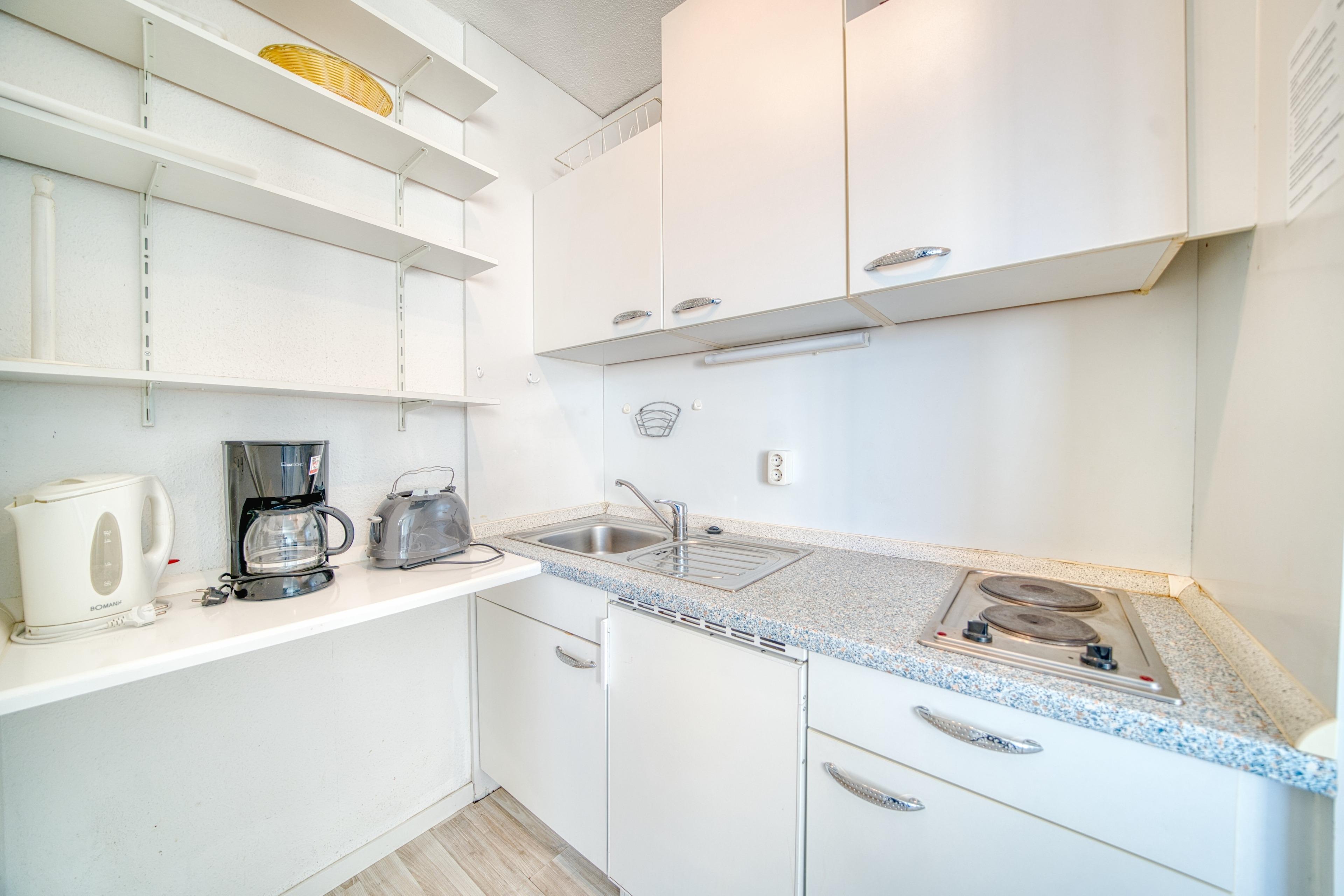 Kompakte Küche mit allem, was Sie für die Selbstverpflegung brauchen:
