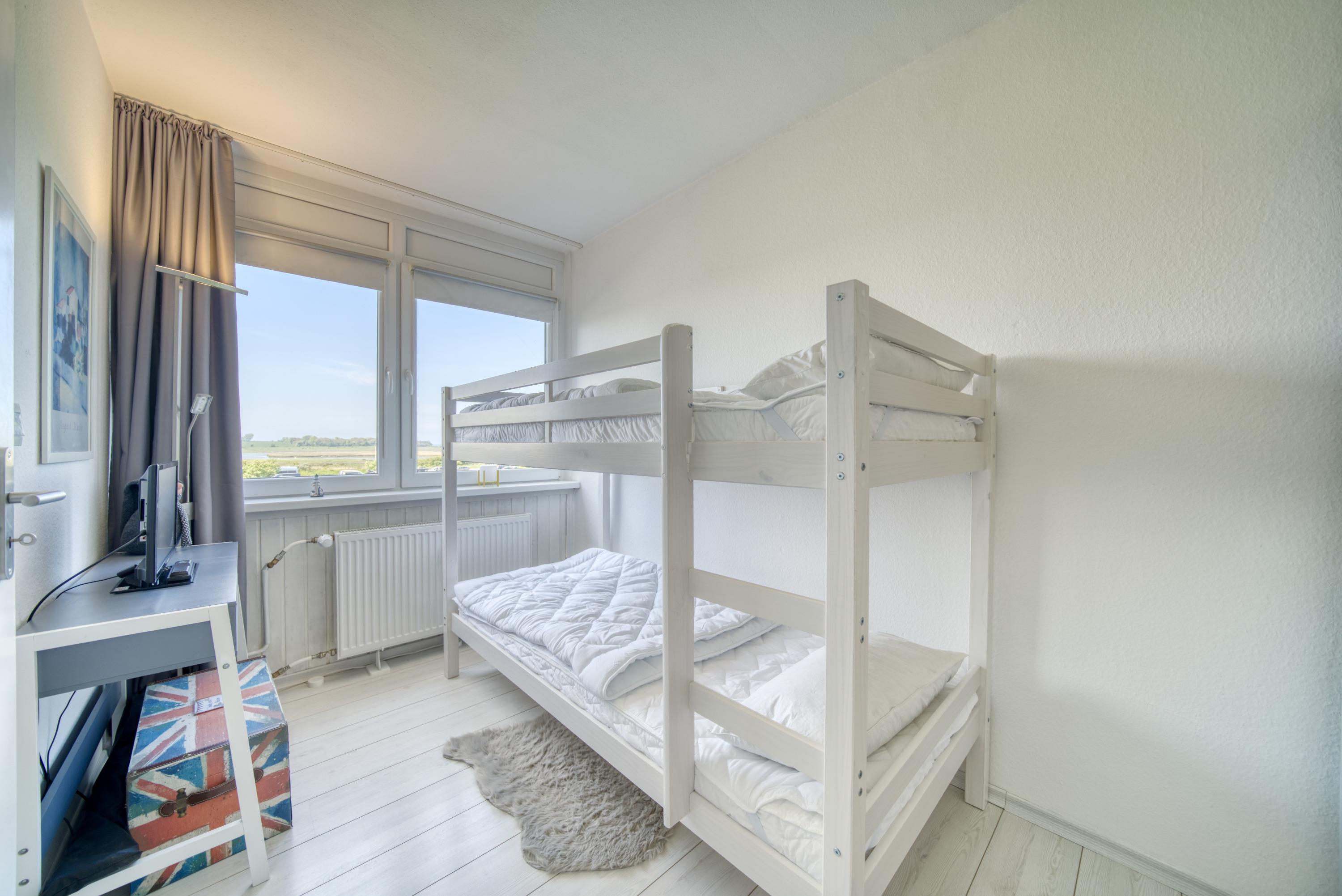 Separates Schlafzimmer mit Etagenbett und zusätzlichem TV – ausdrücklich nur für Kinder, das Etagenbett ist nicht für Erwachsene geeignet.