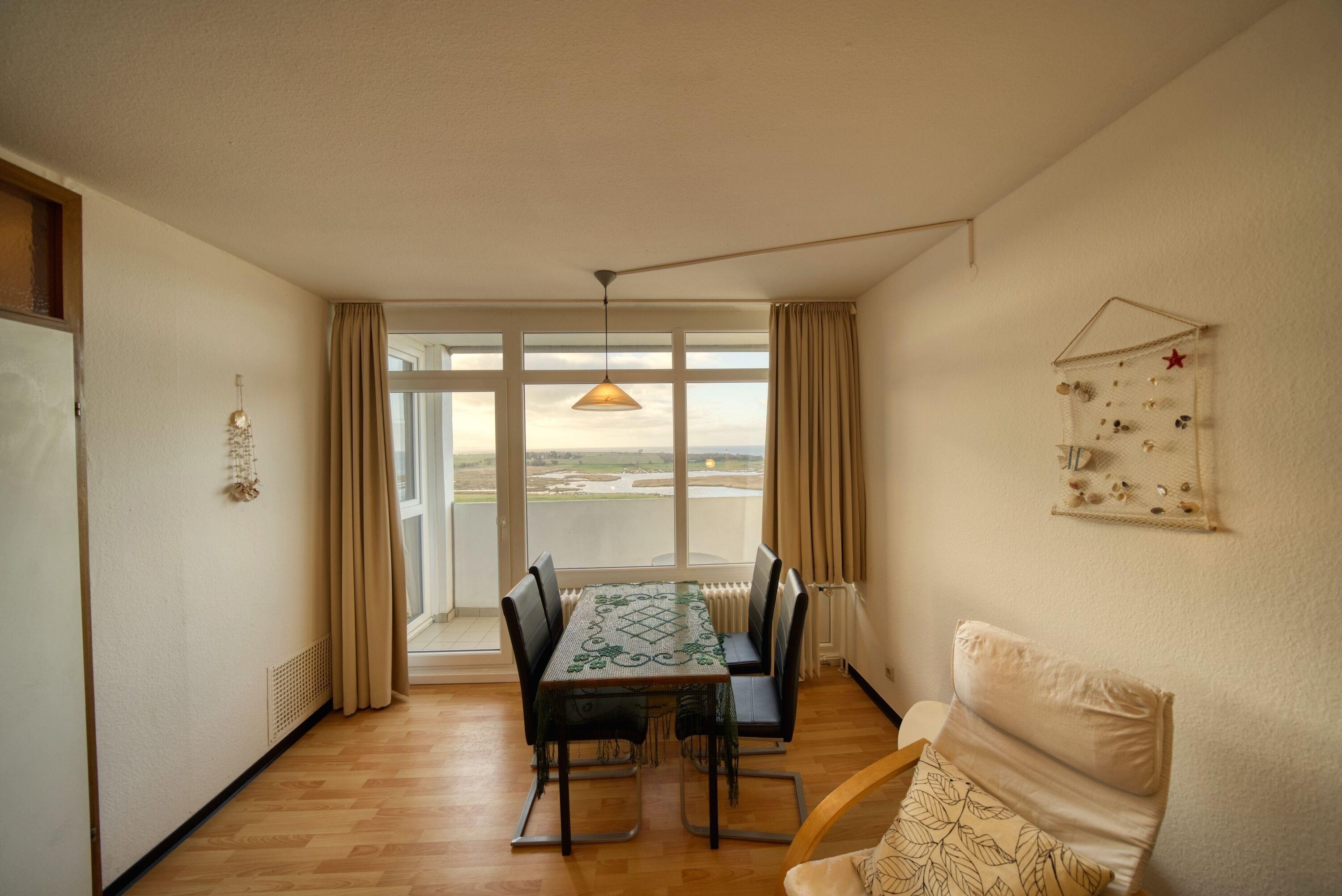 Diese gemütliche Wohnung liegt im Haus H Ferienpark, in der 11. Etage, mit Balkon zur Westseite, der einen herrlichen Ostseeblick über die Salzwiesen bis zum Leuchtturm bietet. Hier genießen Sie Sonne vom Nachmittag bis in die Abendstunden und das farbenfrohe Lichterspiel des Sonnenuntergangs an der Ostsee.