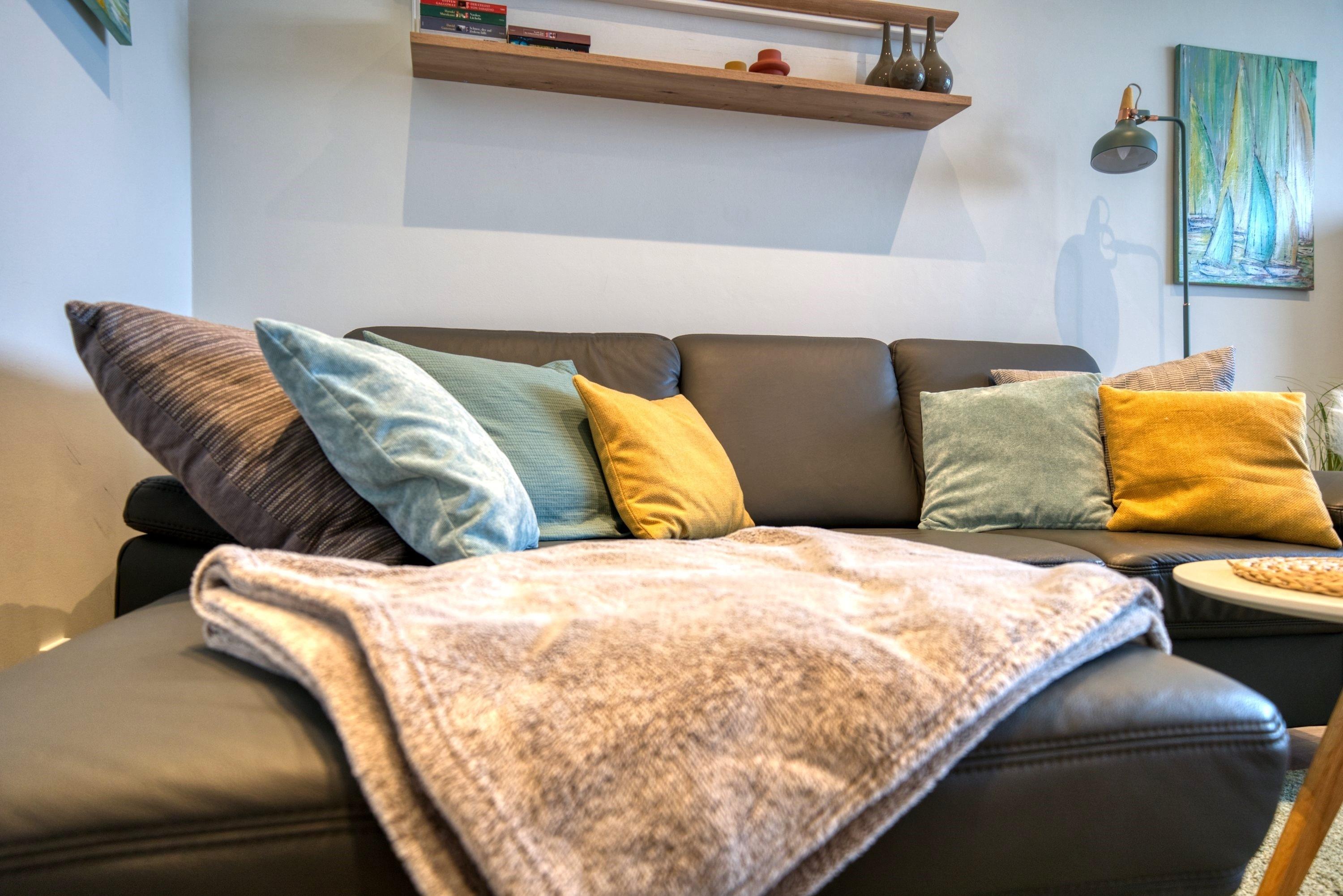 Willkommen in Ihrer hochwertig ausgestatteten Ferienwohnung im Haus K des Ferienparks Heiligenhafen! Diese stilvolle Unterkunft in der 5. Etage bietet auf 45 m² Wohnfläche ein durchdachtes Raumkonzept und einen sonnigen Balkon mit Blick auf die umliegenden Felder und die blühenden Rapslandschaften – ideal für Gäste, die Ruhe und Komfort an der Ostsee suchen.