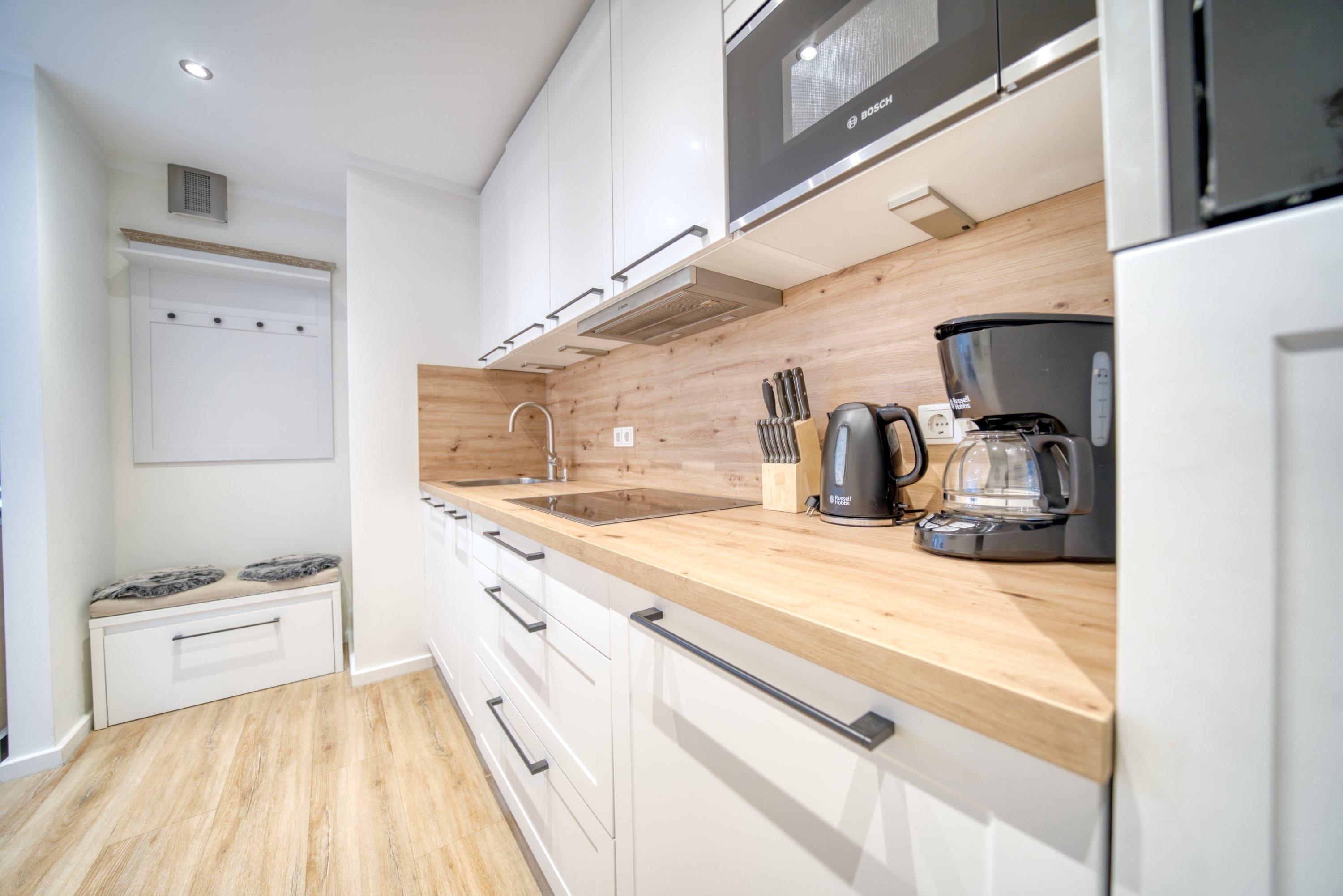 Hochwertige Einbauküche im Eingangsbereich mit:
