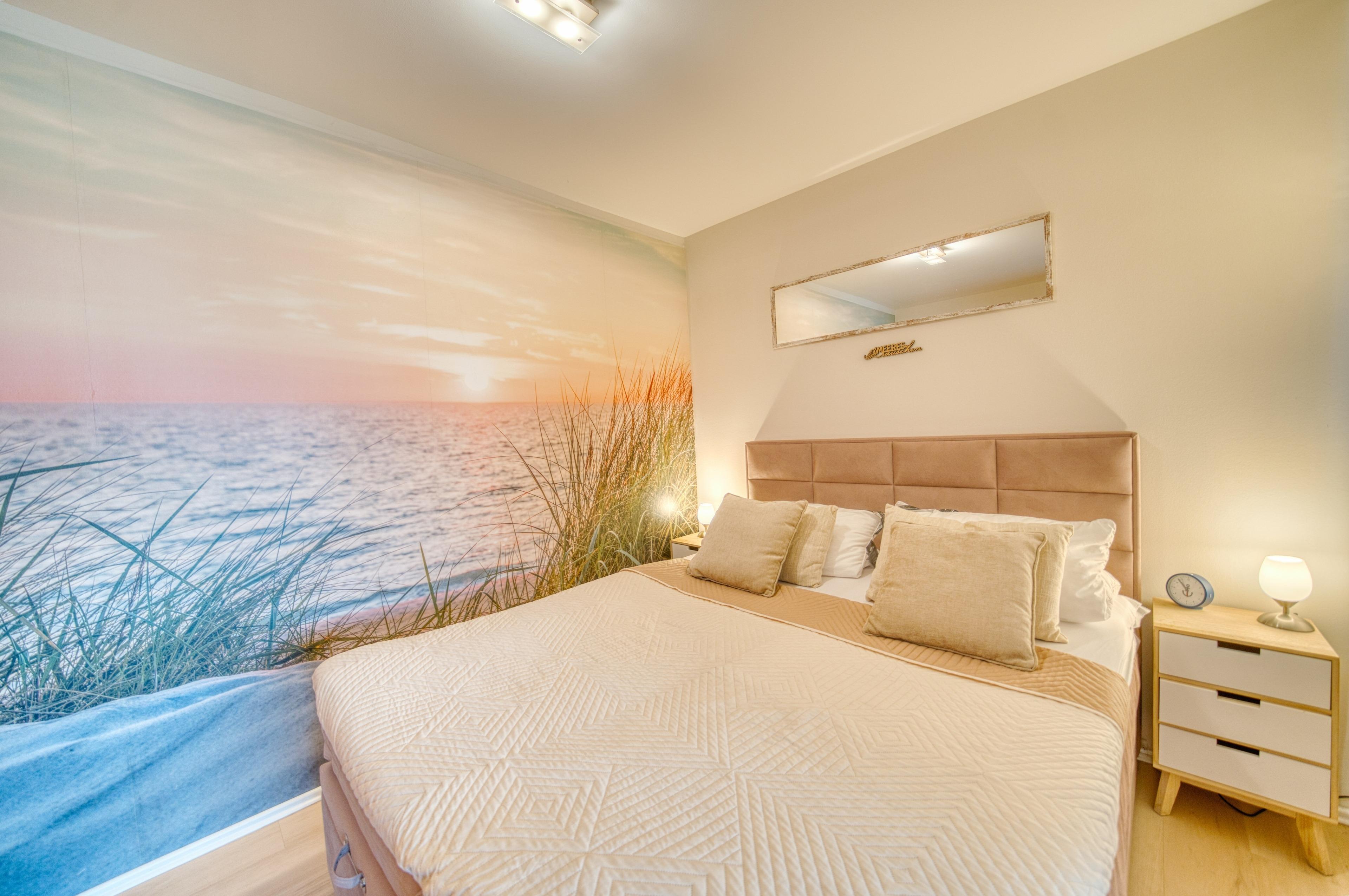 Die Wohnung befindet sich im Haus K des Ferienparks, in der 7. Etage, und bietet ein fantastisches Panorama über die Grünanlagen, den Binnensee und die Ostsee in Richtung der Insel Fehmarn.