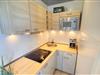 Komplett ausgestattete Küche mit Kühlschrank, Gefrierfach, Ceranfeld, Kaffeemaschine, Wasserkocher und Toaster
