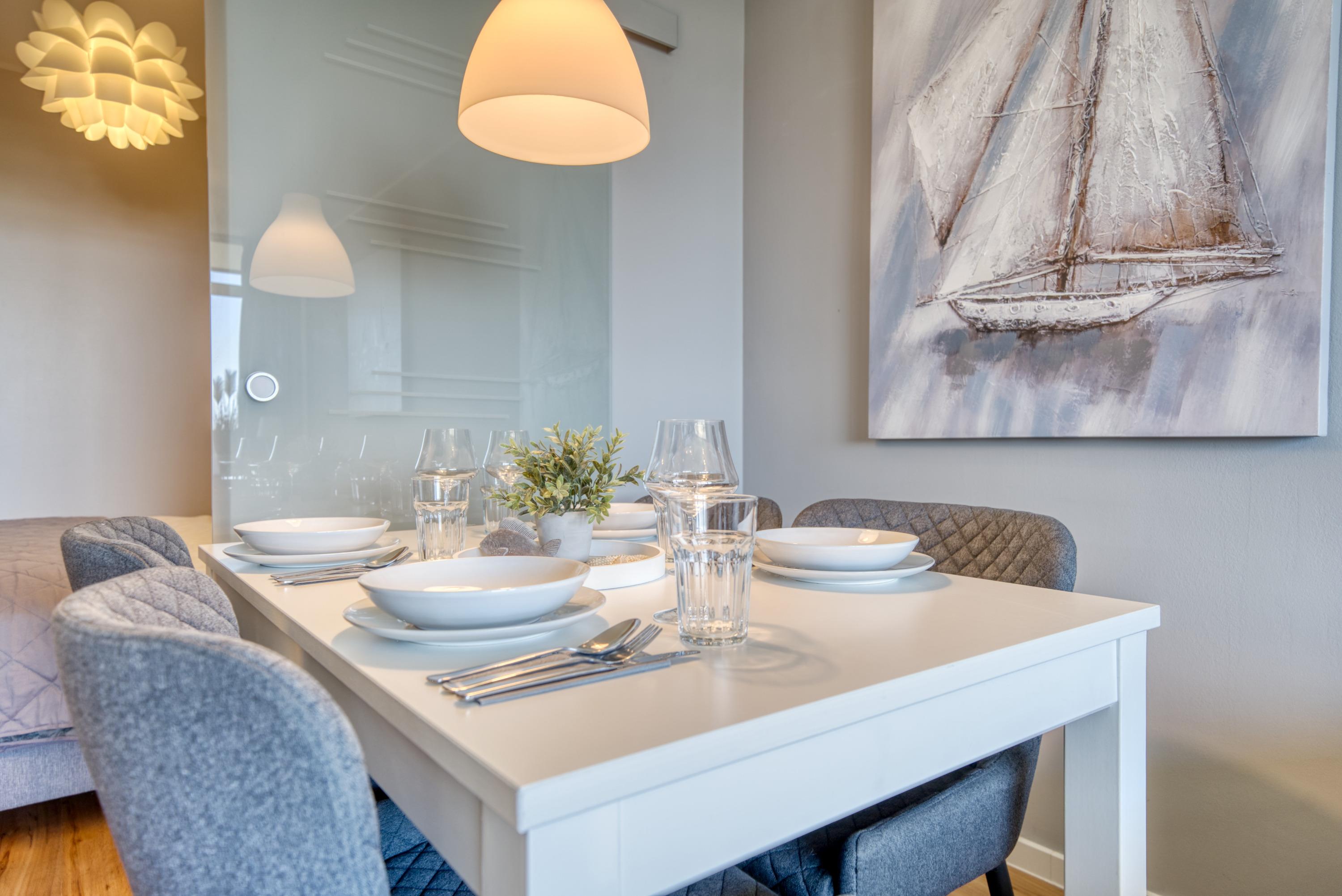 Die Wohnung liegt im Haus L Ferienpark, in der 5. Etage, mit Balkon und einem herrlichen Blick auf die Ostsee und den Binnensee.
