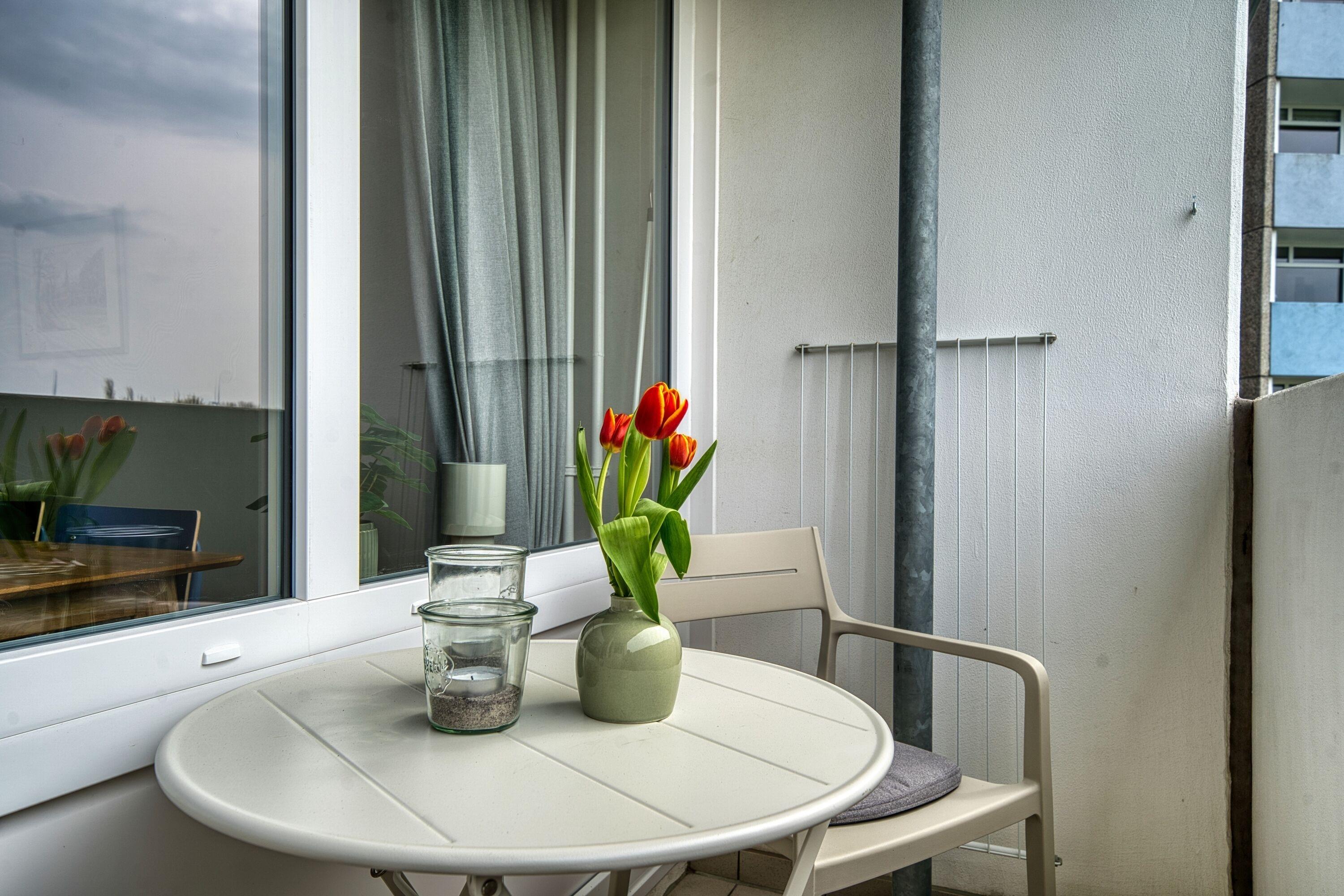 Genießen Sie Ihre Mahlzeiten im Essbereich mit einem großen Esstisch am Fenster. Hier können Sie den Blick ins Grüne genießen und sich beim Frühstück oder Abendessen entspannen. Die Südseite der Wohnung sorgt zudem für viel Sonnenlicht, das den Raum noch freundlicher und einladender macht.