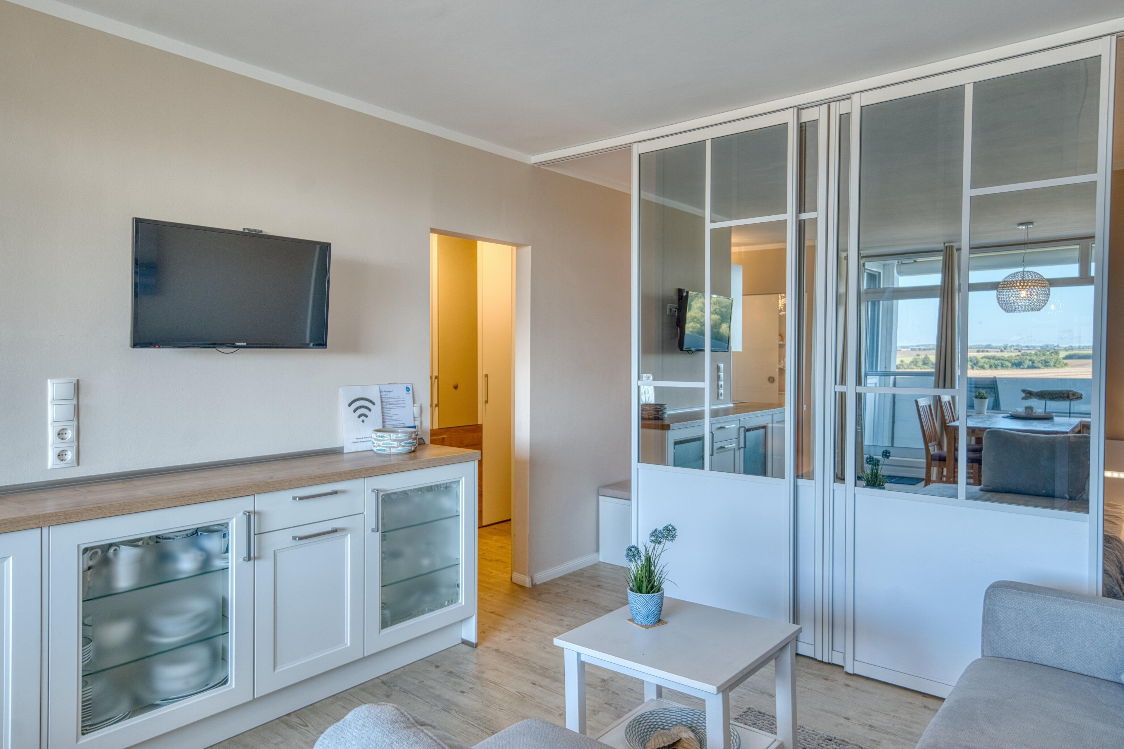 Willkommen in dieser charmanten Ferienwohnung im Ferienpark Heiligenhafen, Haus L, 5. Etage. Die 45?m² große Wohnung bietet Platz für bis zu 4 Personen und überzeugt durch eine durchdachte Raumaufteilung und ruhige Lage mit Blick auf die Grünwiesen.