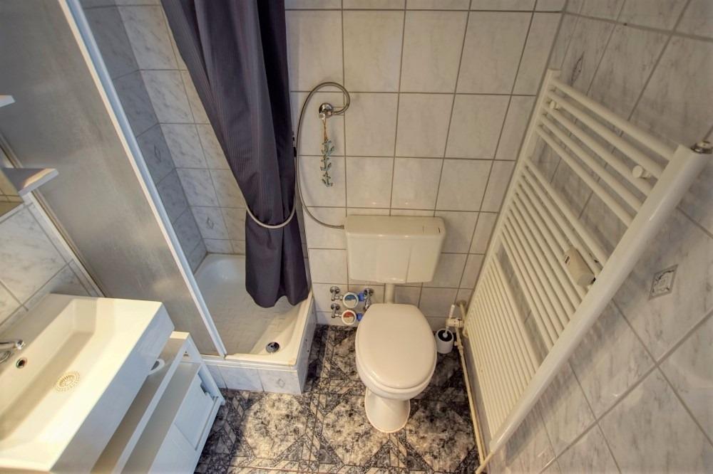 Modernes Duschbad mit Kabine, WC und Handtuchtrockner