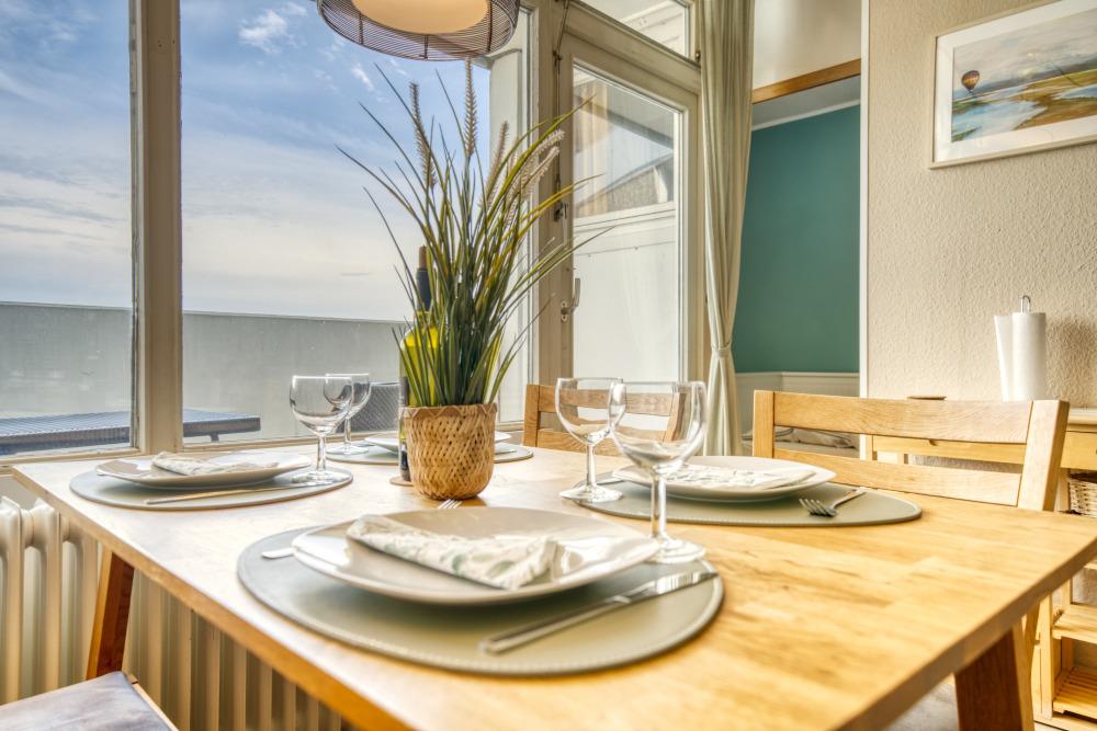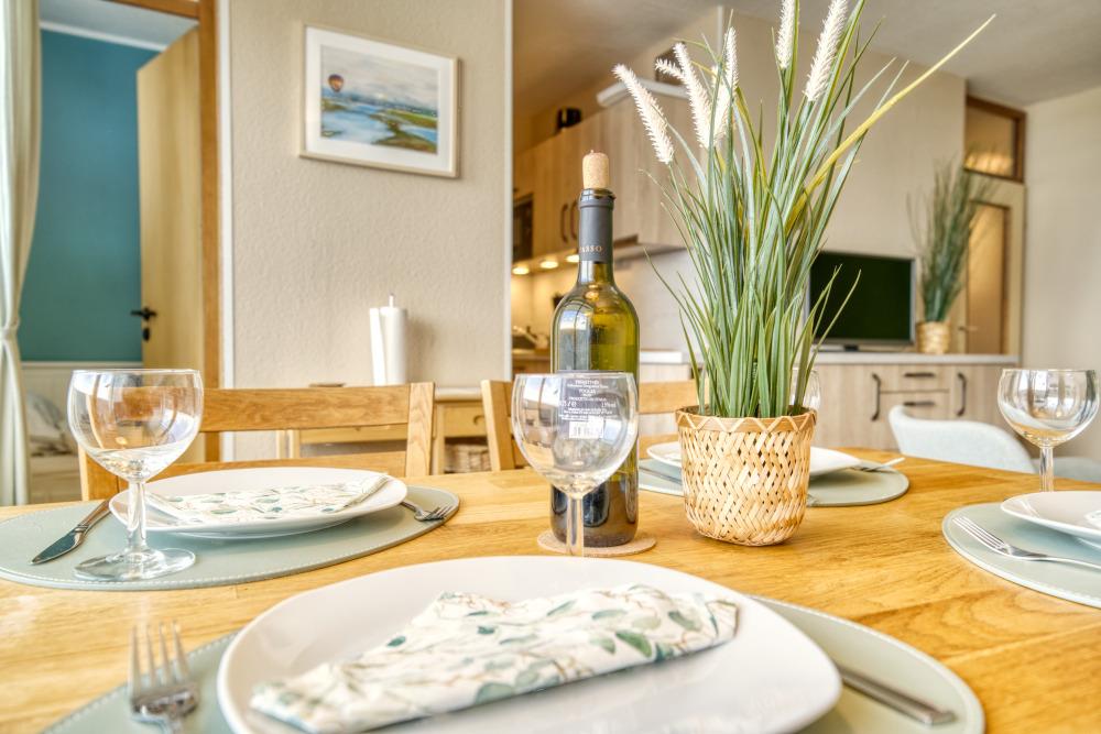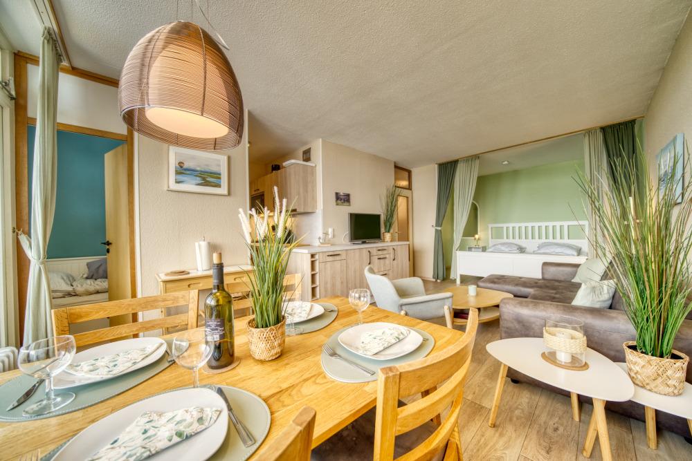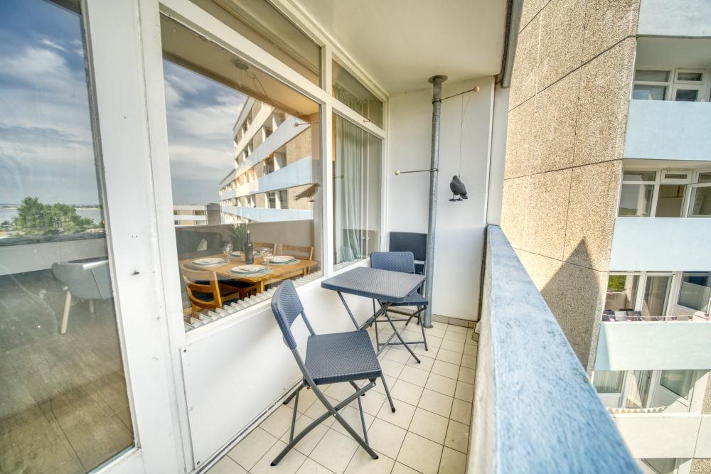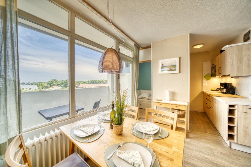 Diese charmante Ferienwohnung in Haus M auf der 6. Etage bietet auf 45?m² Wohnfläche ausreichend Platz für bis zu 4 Personen – ideal für Familien oder Paare mit Kindern. Besonders hervorzuheben ist der Balkon zur Ostseite, von dem Sie einen wunderschönen Blick auf den Binnensee in Richtung Yachthafen genießen können.