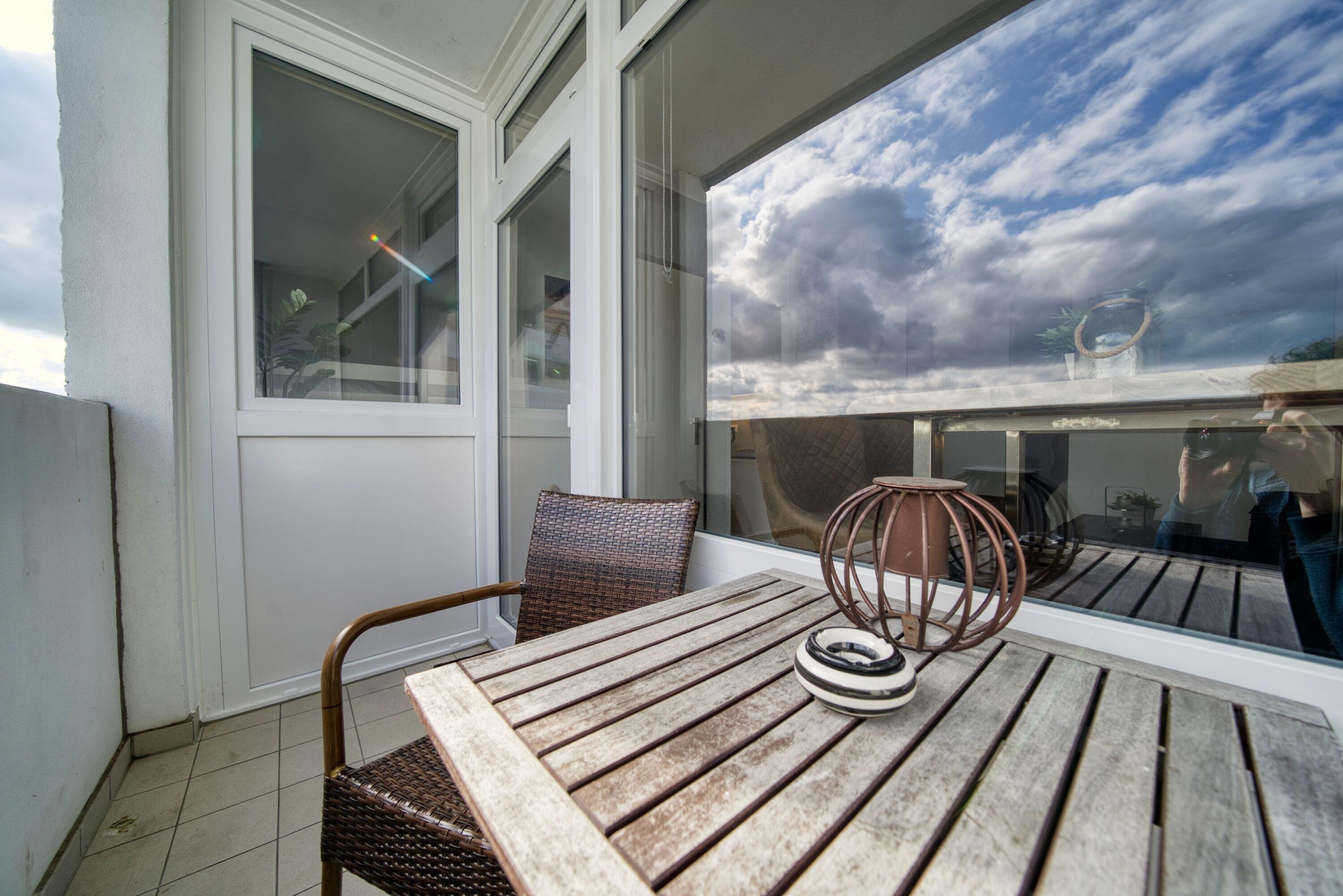 Sonnige und modern ausgestattete Ferienwohnung im Haus M Ferienpark in der 7. Etage mit Balkon zur Ostseite. Genießen Sie den schönen Blick auf den Binnensee Richtung Yachthafen und die entspannte Atmosphäre.