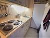 Komplett eingerichtete Küche mit Mikrowelle, Kühlschrank, 4-Plattenherd