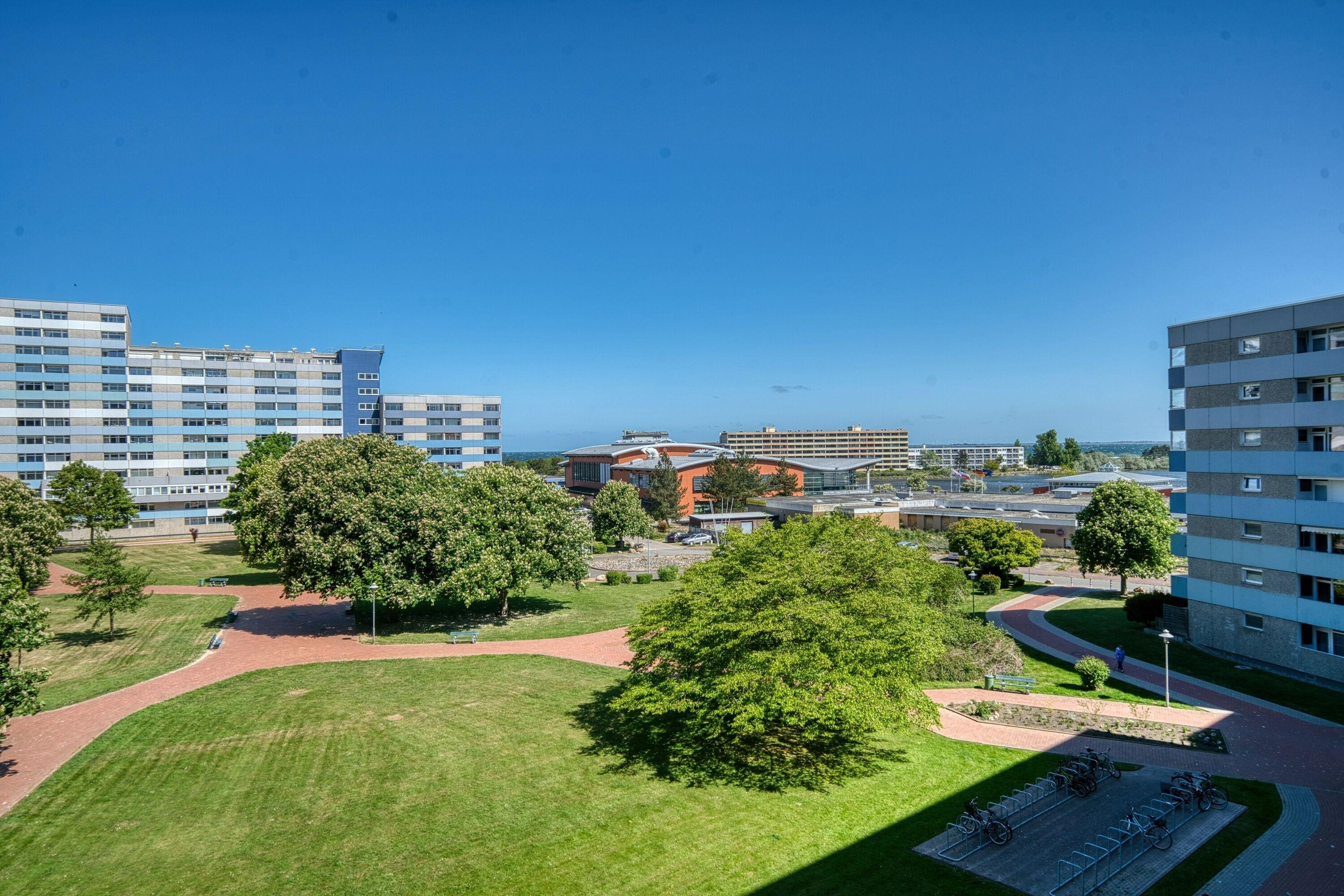 Ein echtes Highlight ist der Balkon, der zum ruhigen, parkähnlich gestalteten Innenhof ausgerichtet ist. Von hier aus genießen Sie nicht nur die grüne Umgebung, sondern auch einen leichten seitlichen Blick auf das nahegelegene Meer – ideal zum Entspannen.