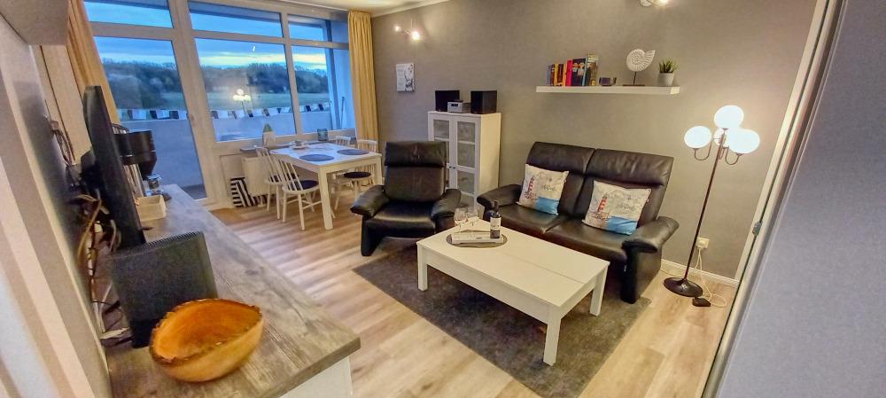Diese wunderschöne, Mitte 2021 modernisierte Wohnung ergänzt unser Angebot im Haus N des Ferienparks. Sie liegt in der 5. Etage und bietet einen Balkon zur Südseite, von dem Sie den Sonnenaufgang genießen und Ihren Blick über grüne Felder bis zum Binnensee schweifen lassen können.