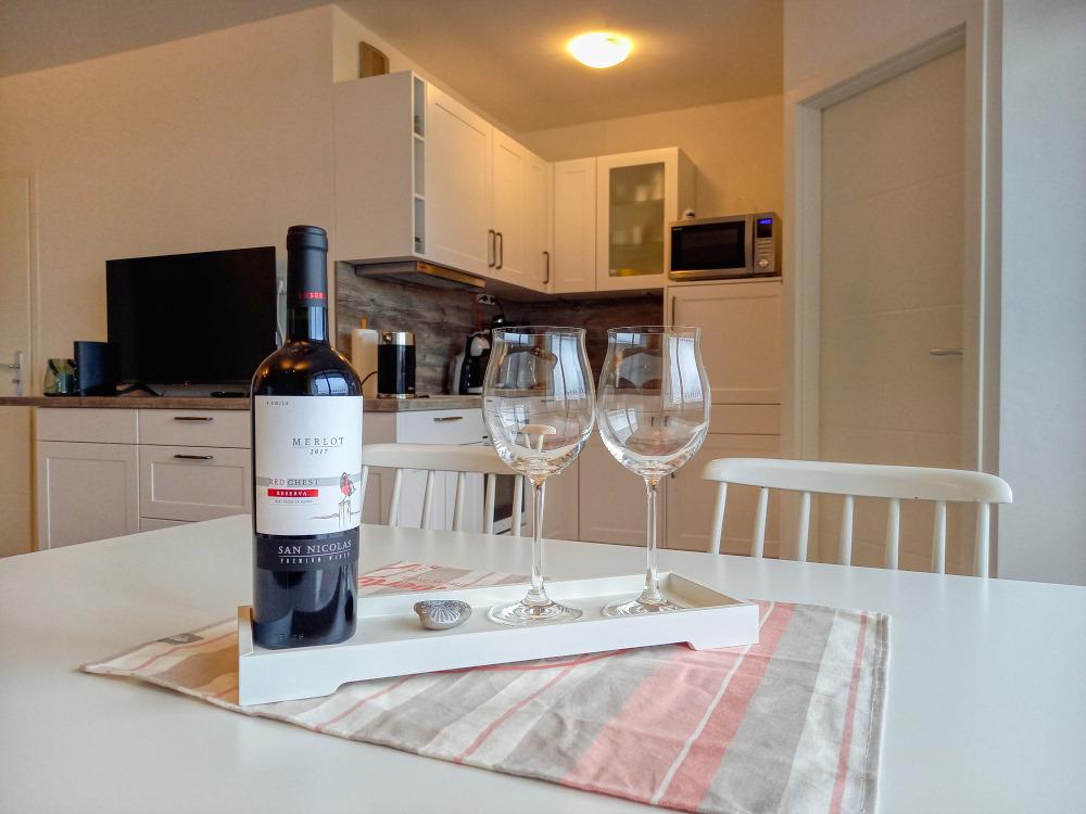 Die Wohnung verfügt über ein separates Schlafzimmer mit Schiebetür und einem komfortablen Doppelbett (1,8?x?2?m). Im Wohnbereich befindet sich zudem ein Schlafsofa, sodass die Wohnung Platz für bis zu 3 Personen bietet.