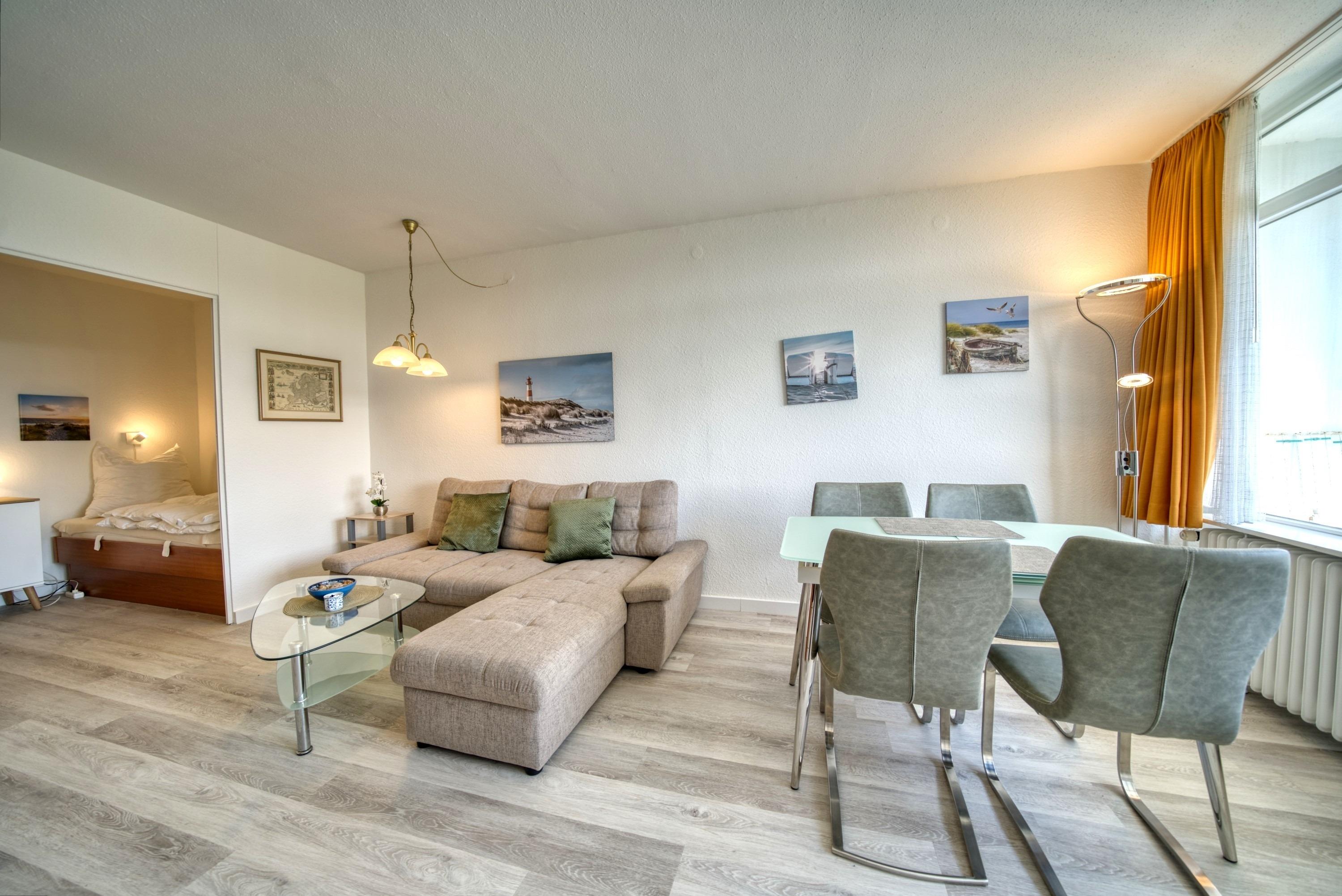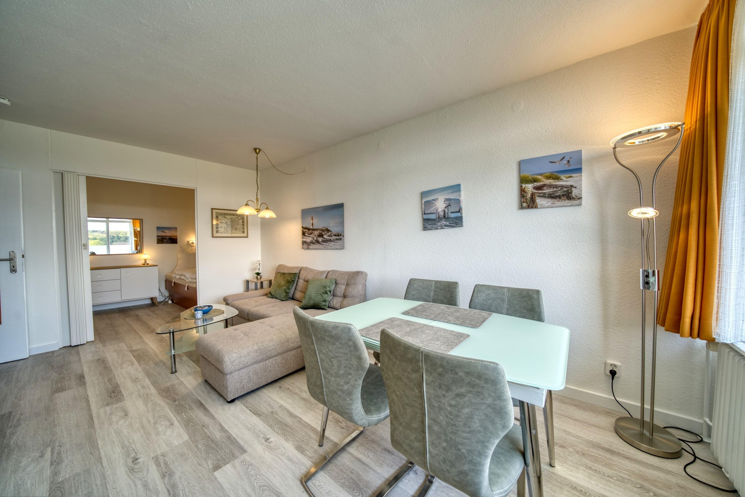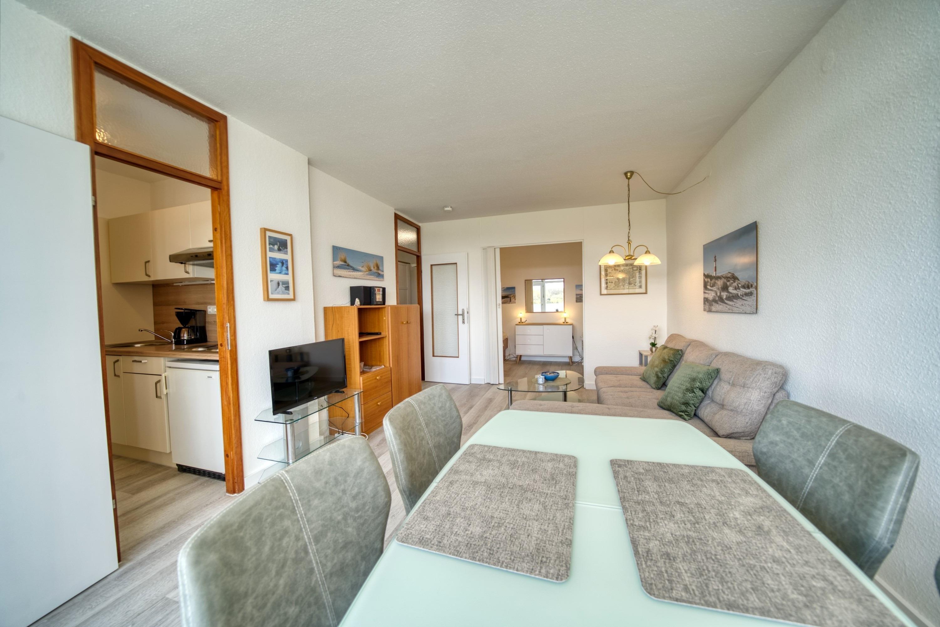 Diese charmante Ferienwohnung in Haus N in der 6. Etage bietet auf 45?m² Platz für bis zu 4 Personen und überzeugt mit einer ruhigen Lage und einem Balkon zur Südseite, der einen herrlichen Blick ins Grüne ermöglicht – ideal für entspannte Urlaubstage.