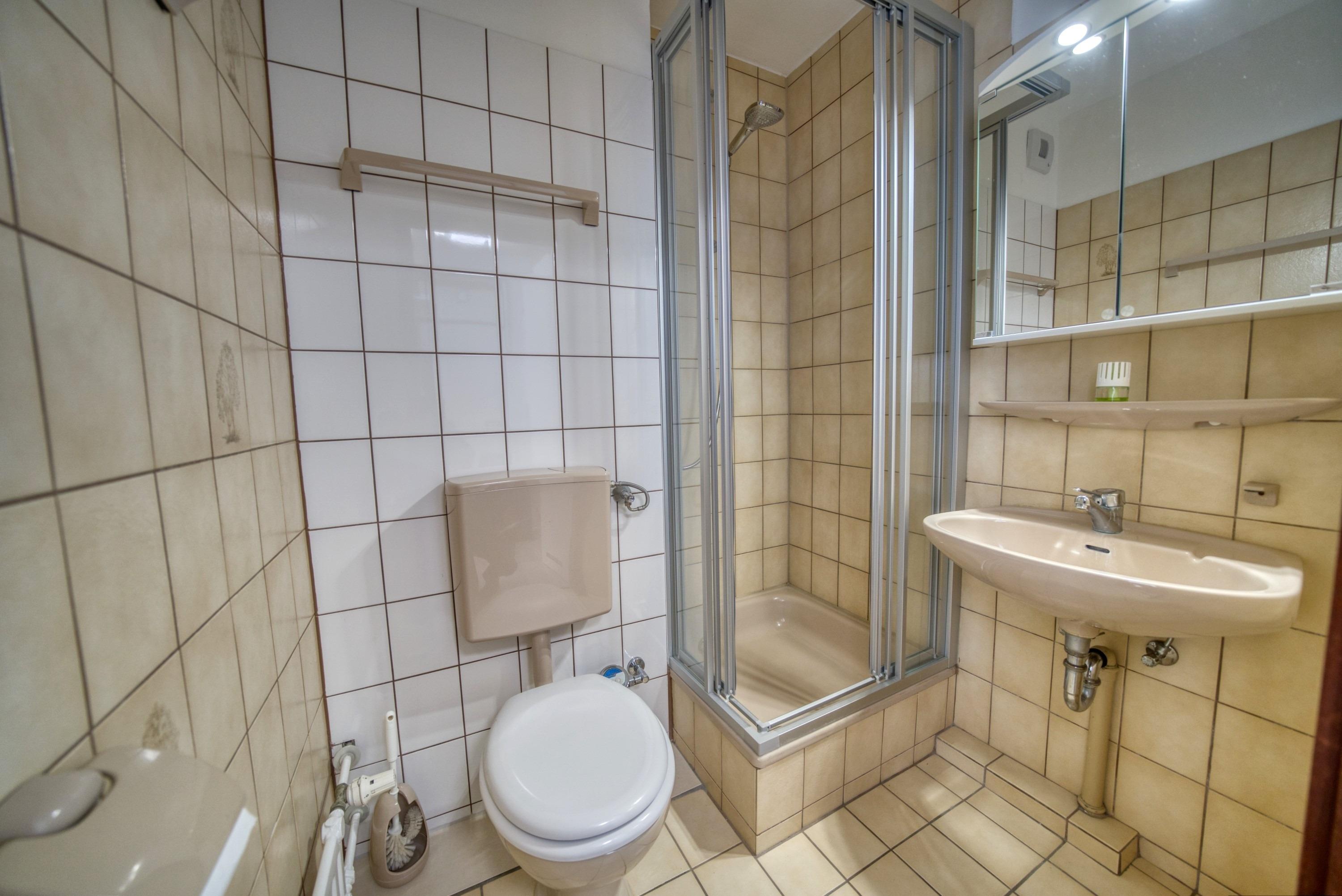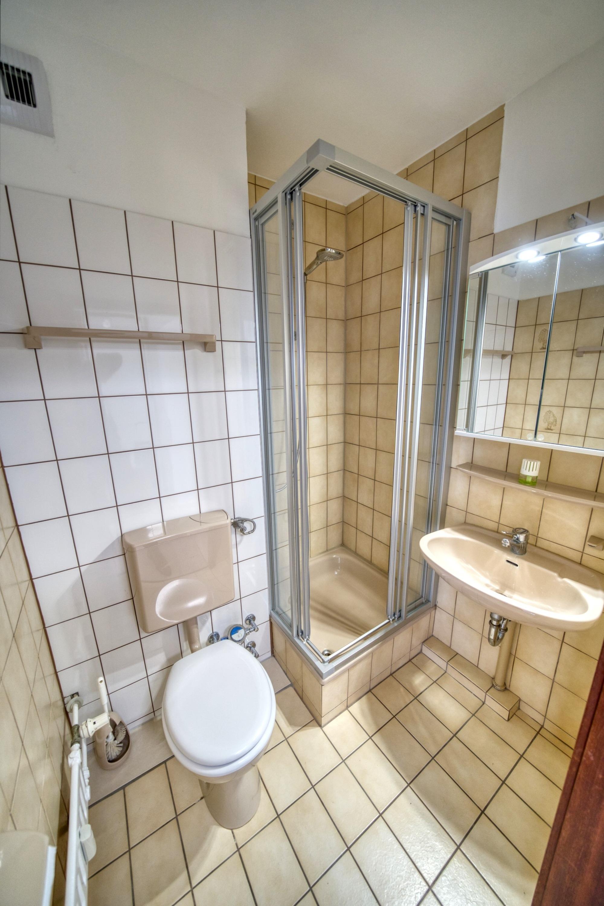 Badezimmer mit Duschkabine und WC
